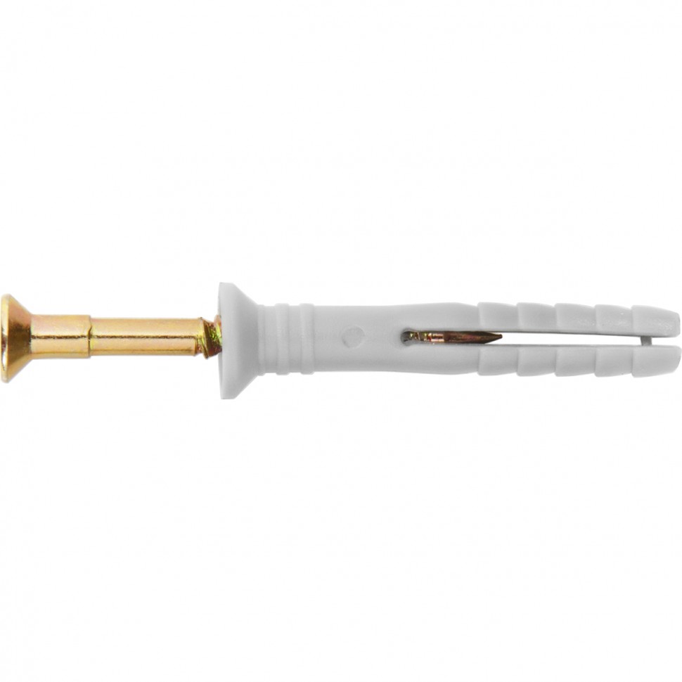Полипропиленовый дюбель-гвоздь Сибртех 42138 с потайным бортиком, размером 8 х 120 мм, 100 шт. в упаковке, предназначен для закрепления деталей и конструкций на основаниях из бетона, кирпича или камня. Потайной бортик дюбеля обеспечивает максимальный контакт крепежа с прикрепляемым материалом. В комплект поставки входят саморезы со шляпкой типоразмера PZ2. Дюбель-гвоздь применяется при проведении строительных и ремонтных работ, прокладке сетей, а также для решения бытовых задач.ПреимуществаПростой и быстрый монтаж — дюбель забивается в основание молотком.Устойчивость к разрушению — дюбель из полипропилена не боится воздействия ультрафиолета, цинковое покрытие защищает гвоздь от образования коррозии.Надежная фиксация в толще материала — ребра на дюбеле препятствуют ослаблению крепежа.Экономичная упаковка — 100 крепежных элементов хватит надолго.