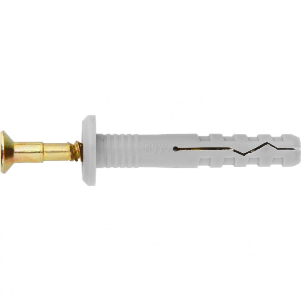 Полипропиленовый дюбель-гвоздь Сибртех 42158 с грибовидным бортиком, размером 6 х 60 мм, 200 шт. в упаковке, используется при проведении ремонтных и отделочных работ. Позволяет крепить плинтусы, рейки, рамки, зажимы, монтажные короба, держатели для труб. Грибовидный бортик плотно прижимает деталь к основанию. Гвоздевой дюбель применяется в профессиональной сфере, подходит также для самостоятельного обустройства квартиры или дачи.ПреимуществаНадежное соединение — дюбель изготовлен из прочного полипропилена и не портится под воздействием ультрафиолета.Простая установка — ребра на дюбеле прочно фиксируют его в толще материала, входящие в комплект саморезы со шляпкой типоразмера PZ2 можно монтировать и демонтировать при помощи обычной отвертки.Коррозионная стойкость — поверхность крепежа оцинкована.Удобная комплектация — в упаковке 200 дюбелей, такого запаса хватит надолго.