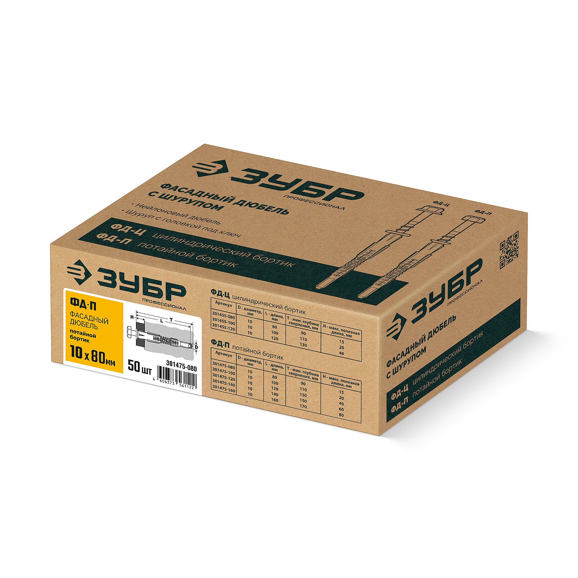 —ЗУБР ФД-П 10 x 80 мм, фасадный дюбель, нейлон/цинк, 50 шт (301475-080)