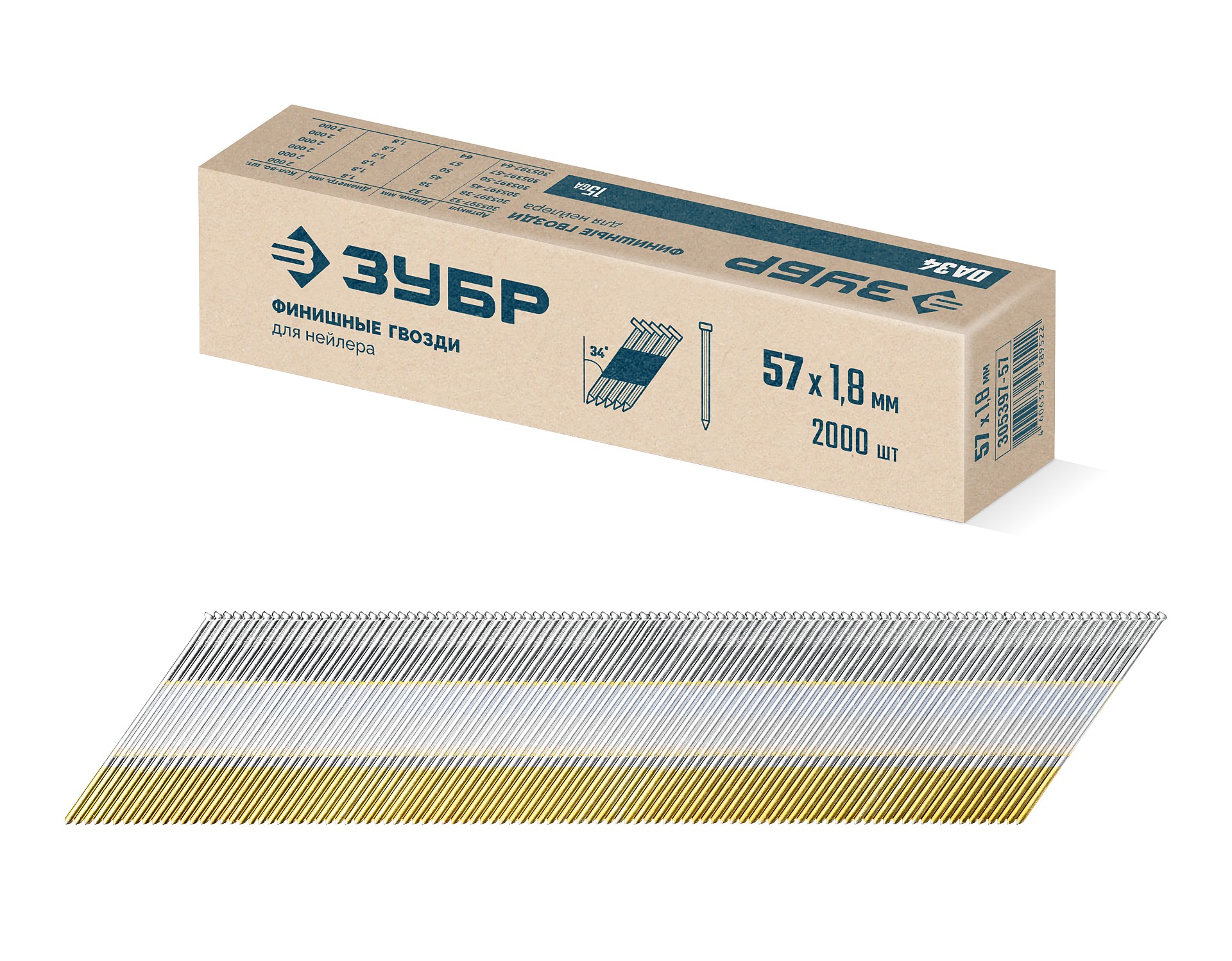 —ЗУБР DA34 57 х 1.8 мм, финишные гвозди, калибр 15GA, 2000 шт (305397-57)