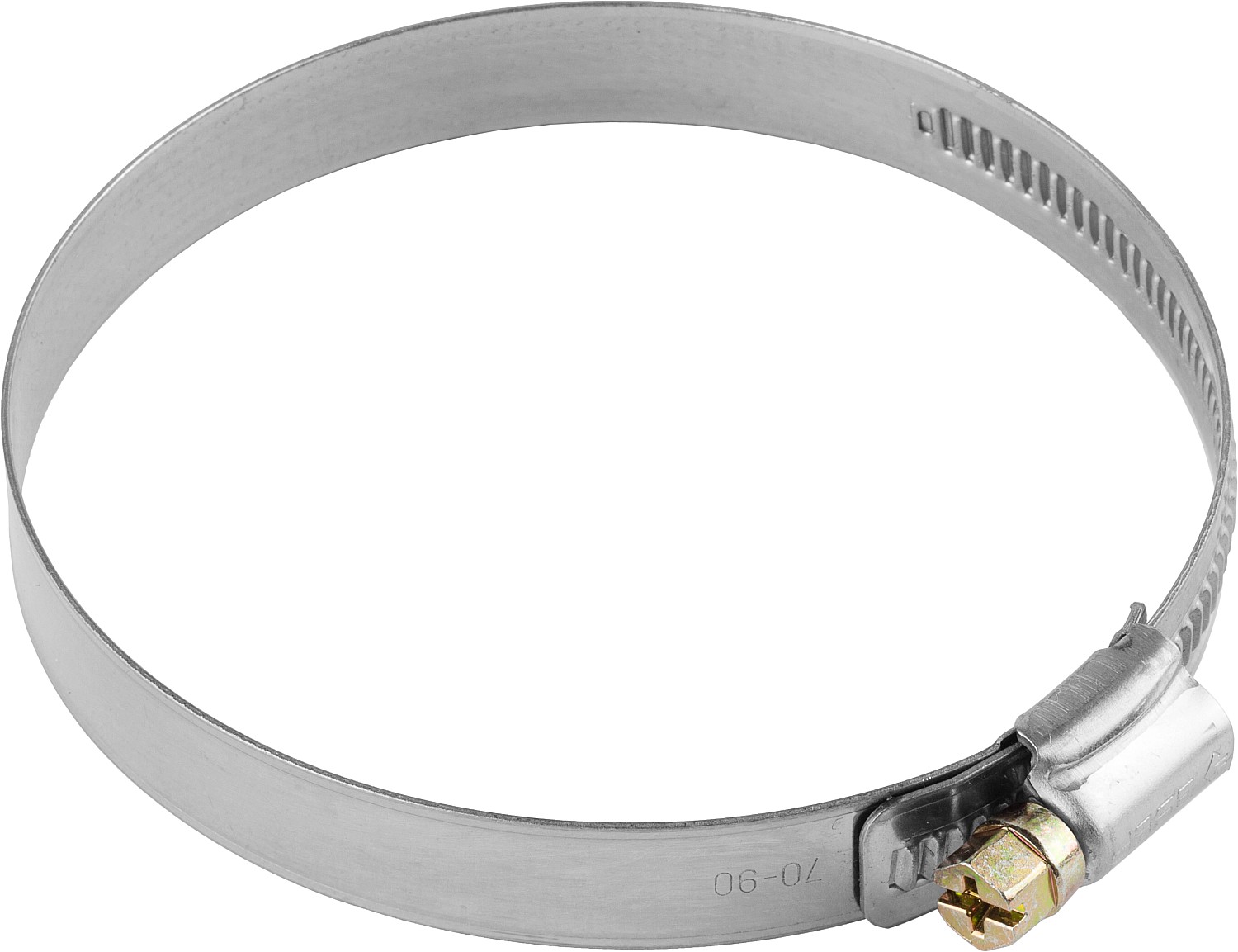 Червячный хомут состоит из штампованной нержавеющей ленты и винта с червячной резьбой. Накатная лента имеет гладкую внутреннюю поверхность, которая предотвращает повреждения поверхности скрепляемых материалов. При вращении винта лента сжимается, благодаря чему создается надежное и герметичное соединение шлангов, различных труб, и т.д. Червячный винт снабжен шестигранной головкой под ключ 8 мм и шлицем SL, что позволяет использовать при монтаже гаечный ключ или шлицевую отвертку.