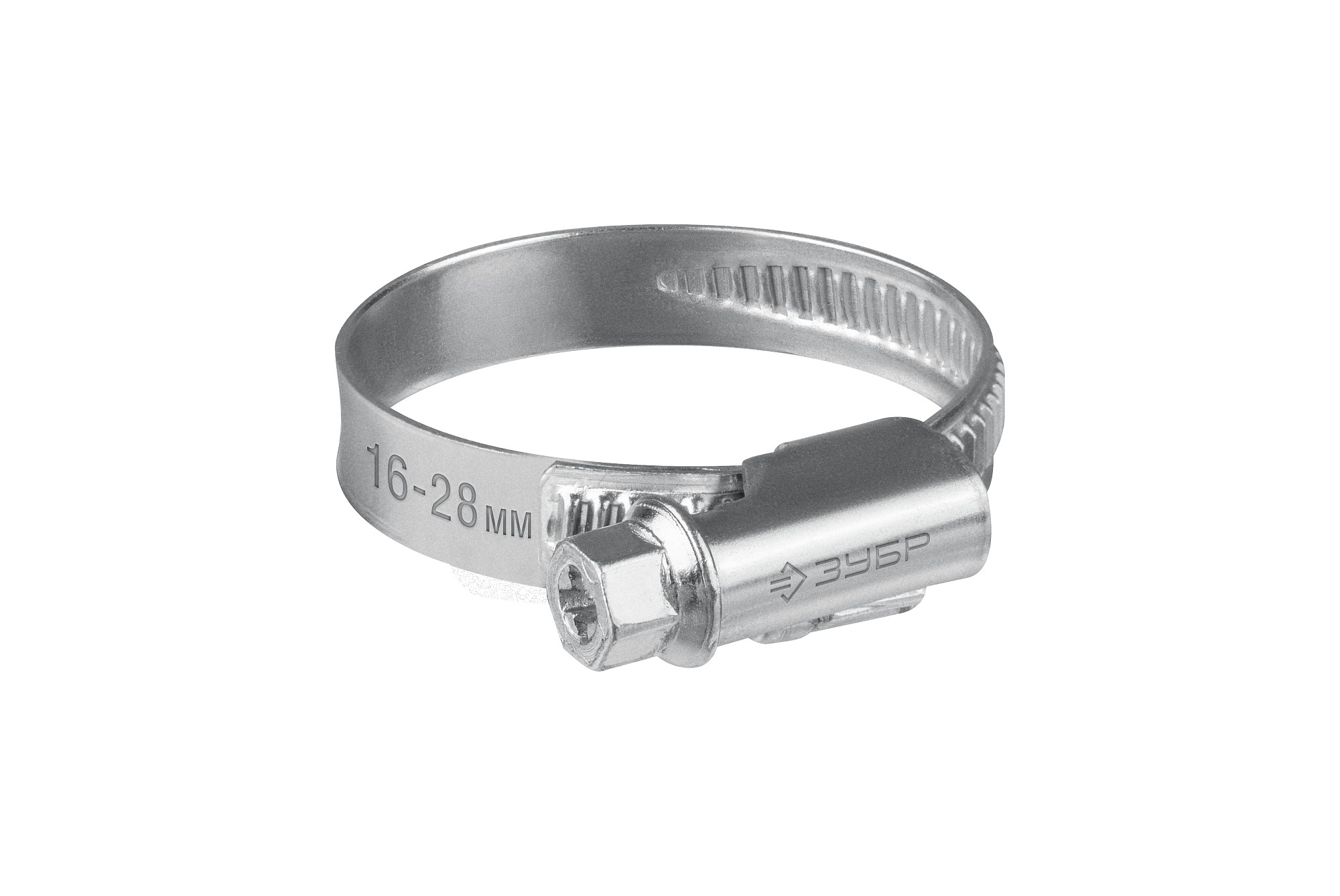 ЗУБР Х-9Н, 16 - 28 мм, накатная лента 9 мм, цинк, 50 шт, червячный хомут (37807-28)
