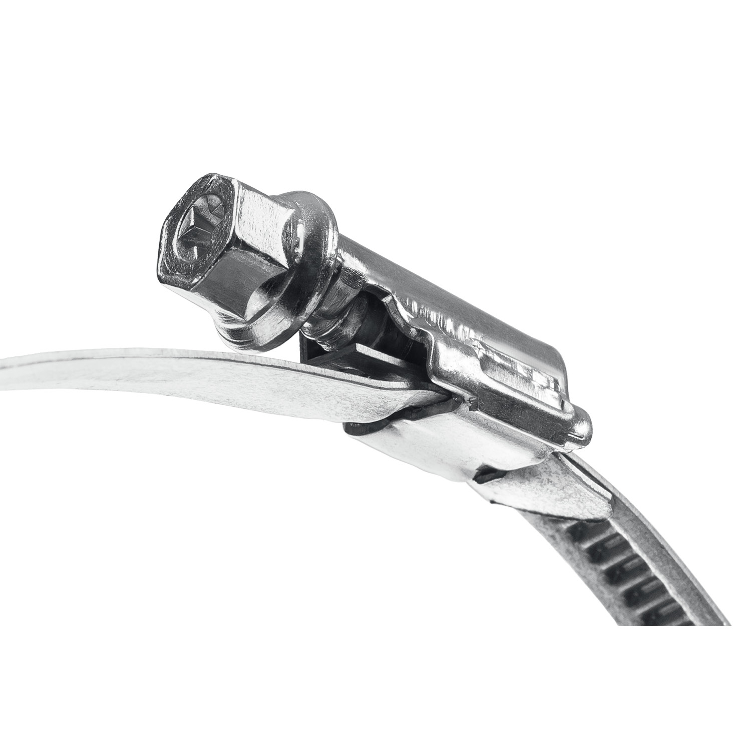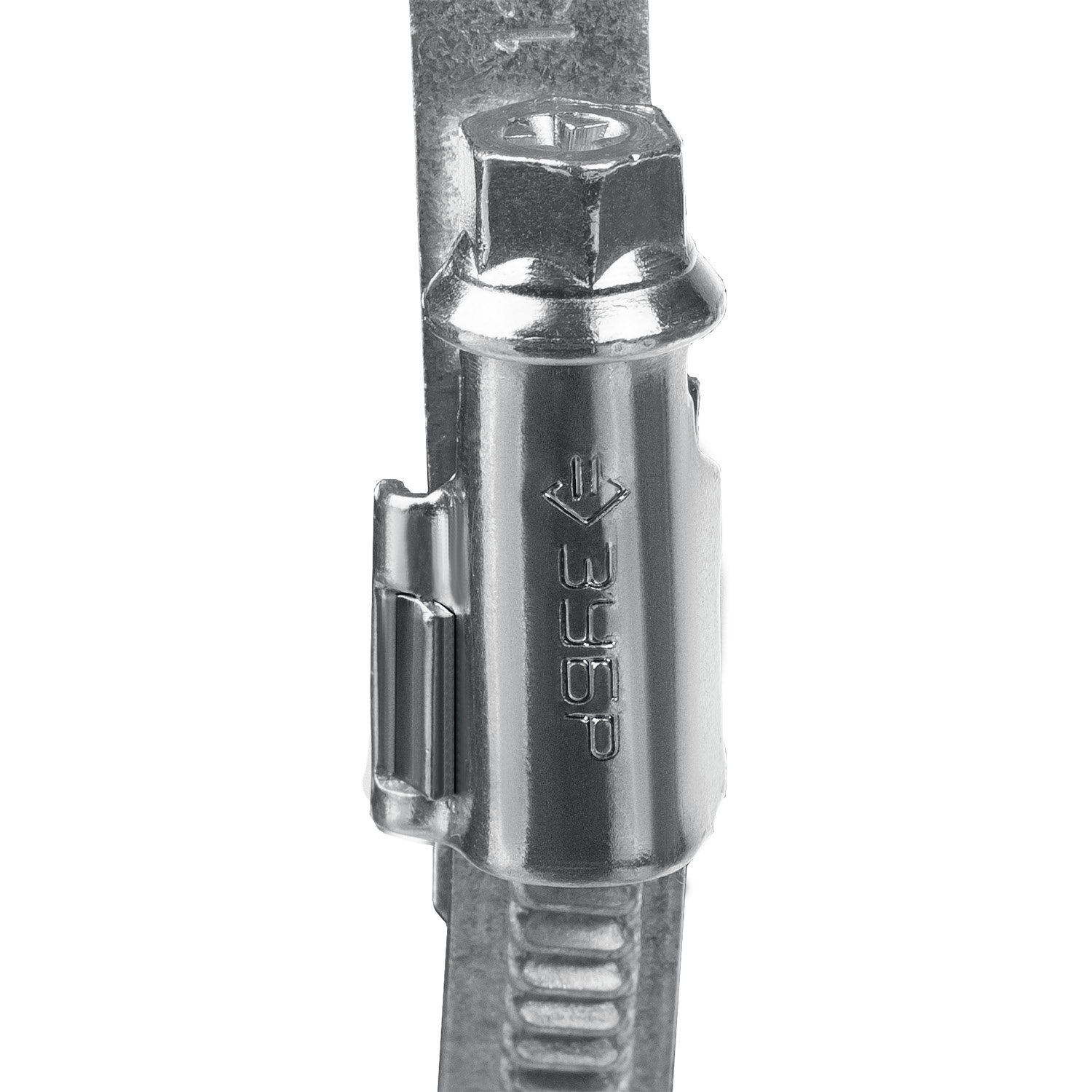 Червячный хомут состоит из штампованной ленты и винта с червячной резьбой. Накатная лента имеет гладкую внутреннюю поверхность, которая защищает шланг от повреждений. При вращении винта лента сжимается, благодаря чему создается надежное и герметичное соединение шлангов, различных труб, и т.д. Червячный винт снабжен шестигранной головкой под ключ 8 мм и шлицем PH, что позволяет использовать при монтаже гаечный ключ или шлицевую отвертку.
