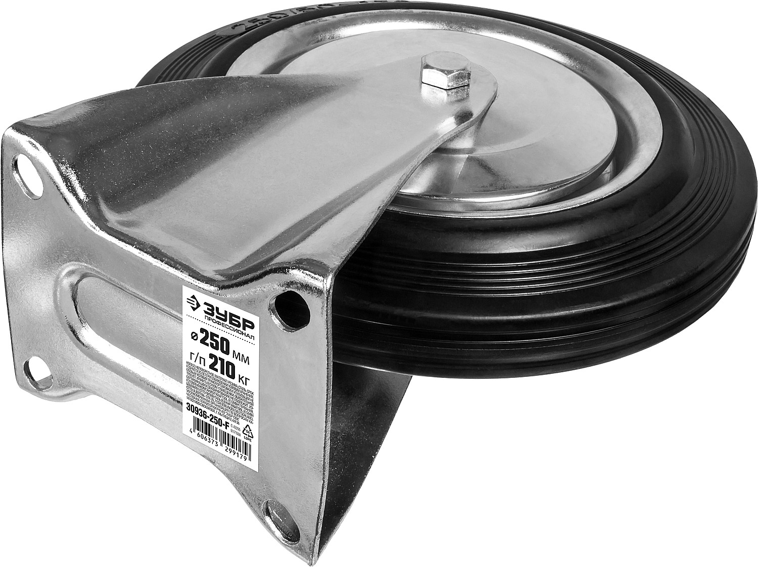 ЗУБР d 250 мм, г/п 210 кг, игольчатый подшипник, резина/металл, неповоротное колесо, Профессионал (30936-250-F)