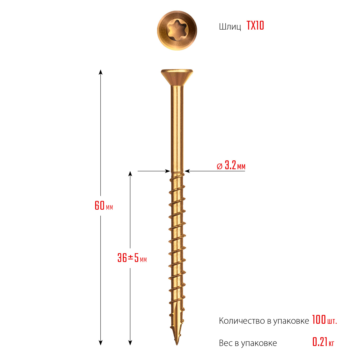 - Износостойкий шлиц TORX предотвращает срывание биты при закручивании и обеспечивает большой крутящий момент.