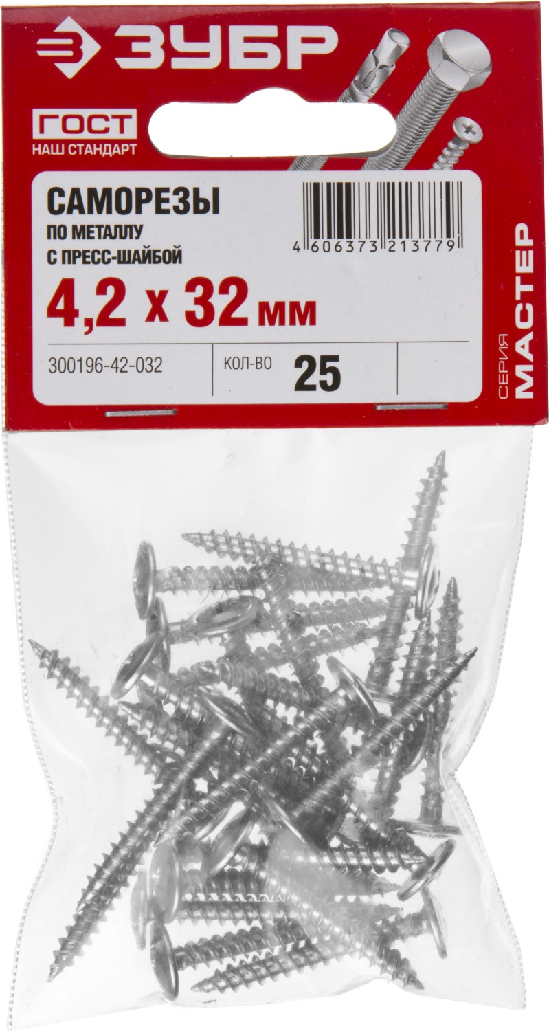 ЗУБР ПШМ, 32 х 4.2 мм, цинк, 25 шт, саморез с пресс-шайбой (300196-42-032)