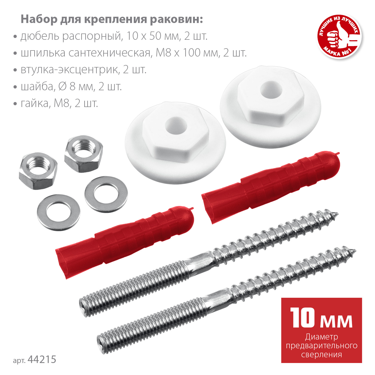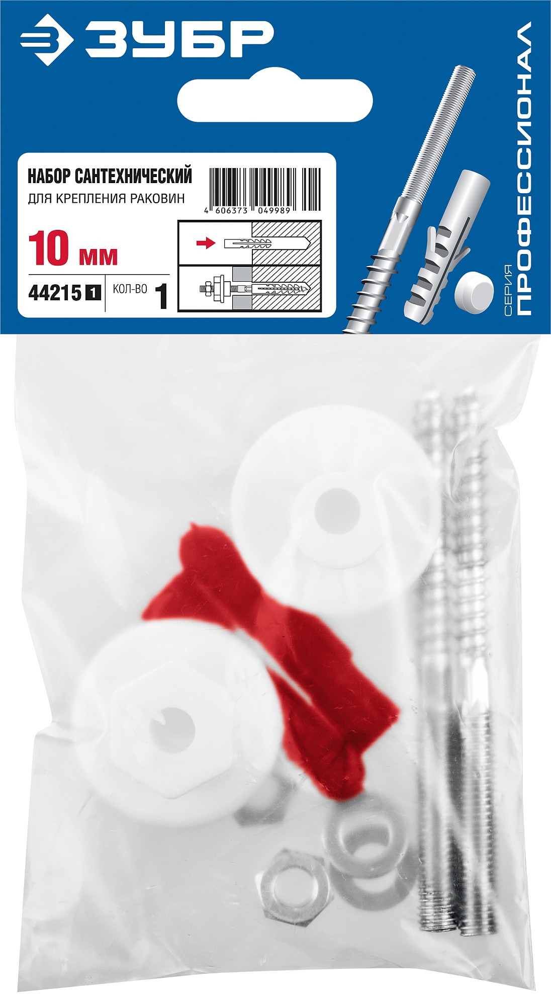 - Набор включает в себя полный комплект крепежных изделий, необходимых для установки раковины: дюбели, шурупы, шайбы, гайки и втулки пластмассовые