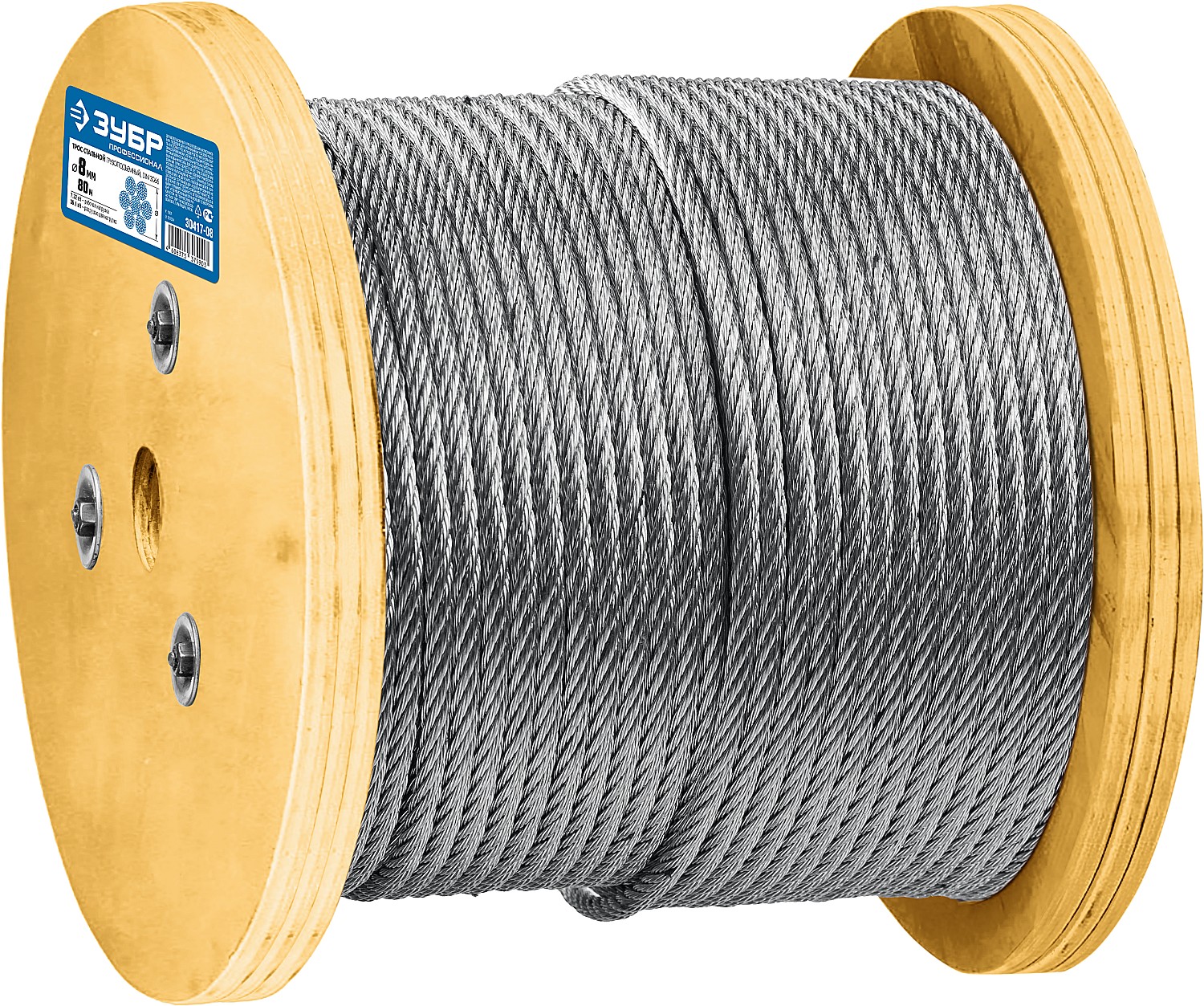 —ЗУБР DIN 3066, свивка 6 х 37 + IWR, 8 мм, L 80 м, грузоподъемный стальной трос, Профессионал (30417-08)