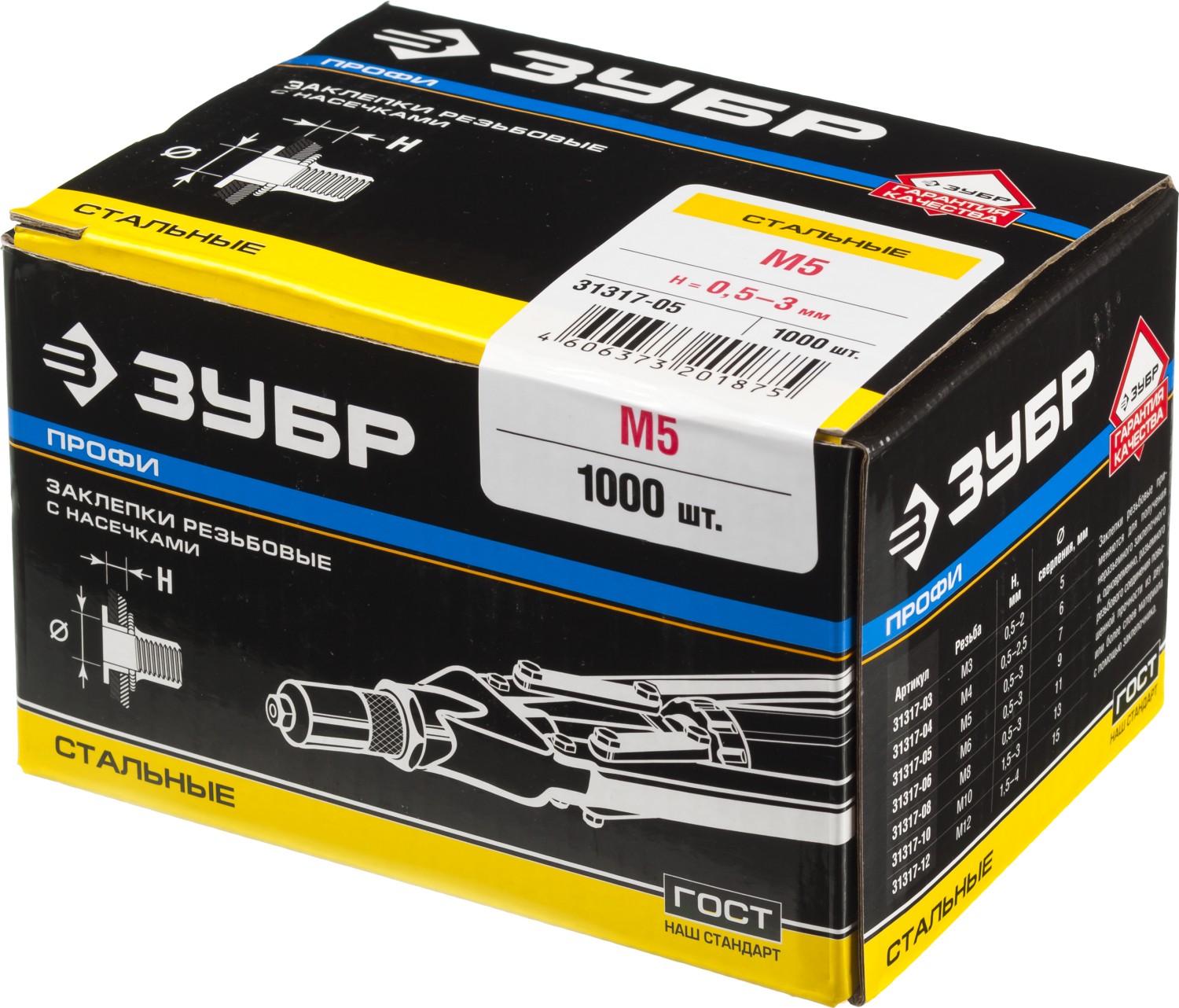 —ЗУБР М5, станд. бортик, 1000 шт, стальные резьбовые заклепки с насечками, Профессионал (31317-05)