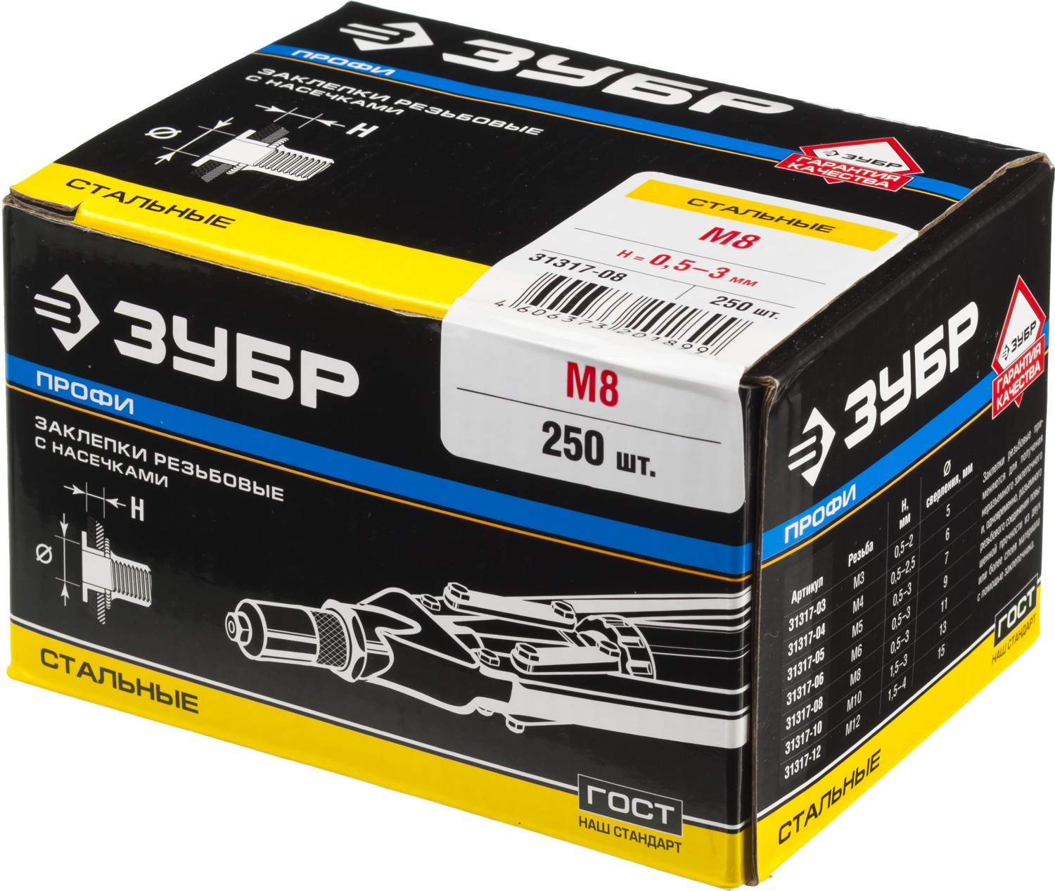 - Наличие насечек на корпусе защищает установленную заклепку от проворачивания в материале