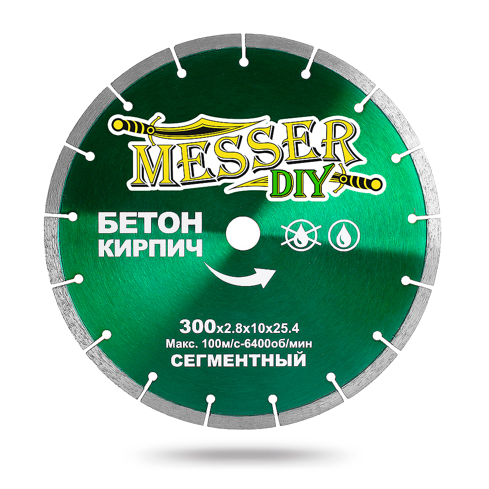 Сегментный алмазный диск "MESSER-DIY" для резки кирпича и бетона с небольшим армированием.