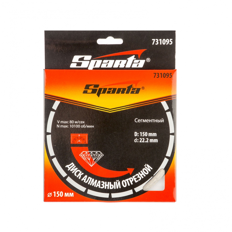 Диск алмазный отрезной сегментный Sparta 731095, 150 х 22,2 мм, применяется для сухой резки бетона, камня, шлакоблока, тротуарной плитки и кирпича. Устанавливается на углошлифовальные машины с посадочным диаметром 22,2 мм. Оптимален для решения бытовых задач. Благодаря высокому рабочему ресурсу диск подходит для интенсивной работы.ПреимуществаСегментное строение диска способствует активному отведению тепла и пыли, поэтому водяное охлаждение не требуется.Режущая кромка шириной 7 мм обеспечивает хорошее качество и скорость реза.Рабочий слой нанесен методом холодного прессования, благодаря чему диск характеризуется износостойкостью.
