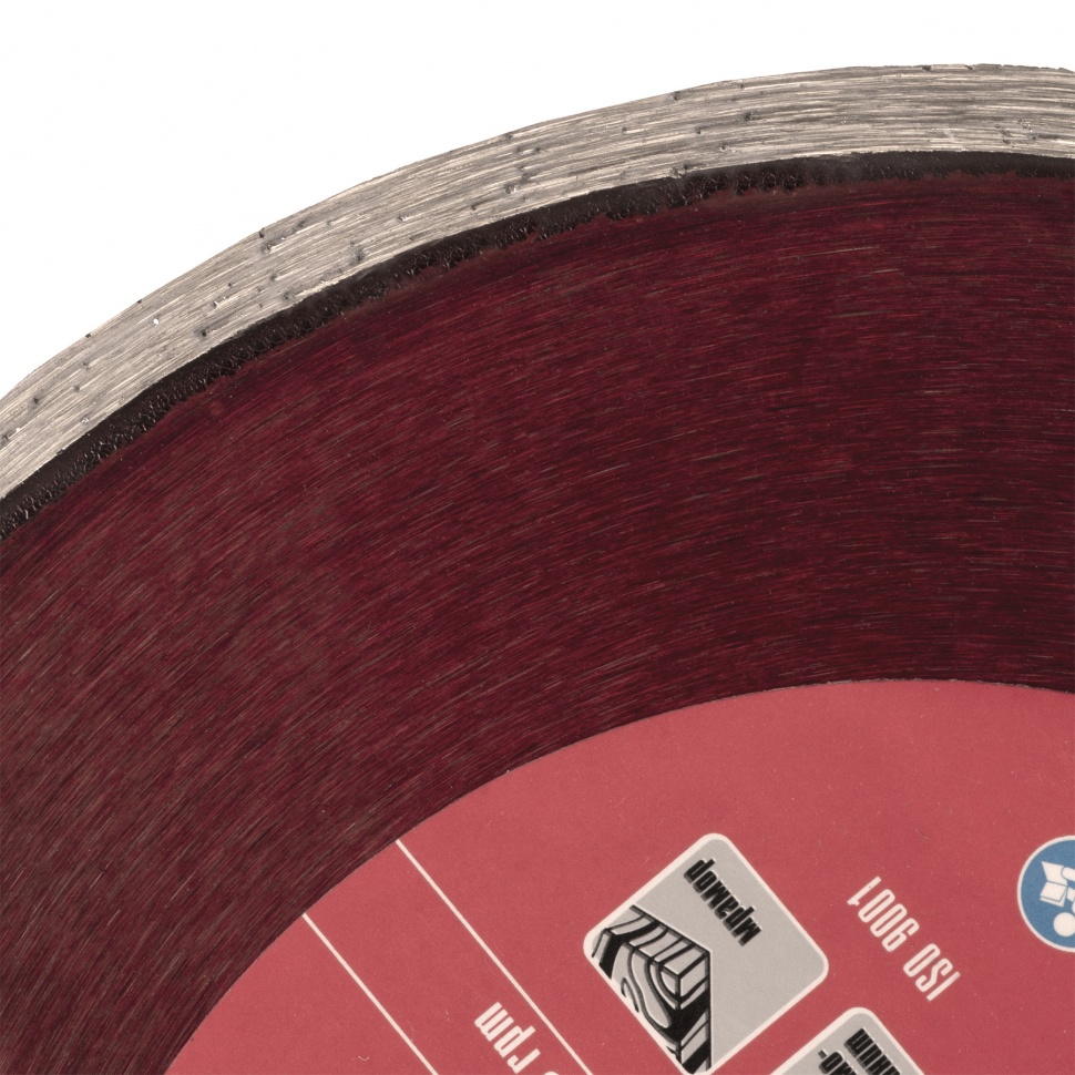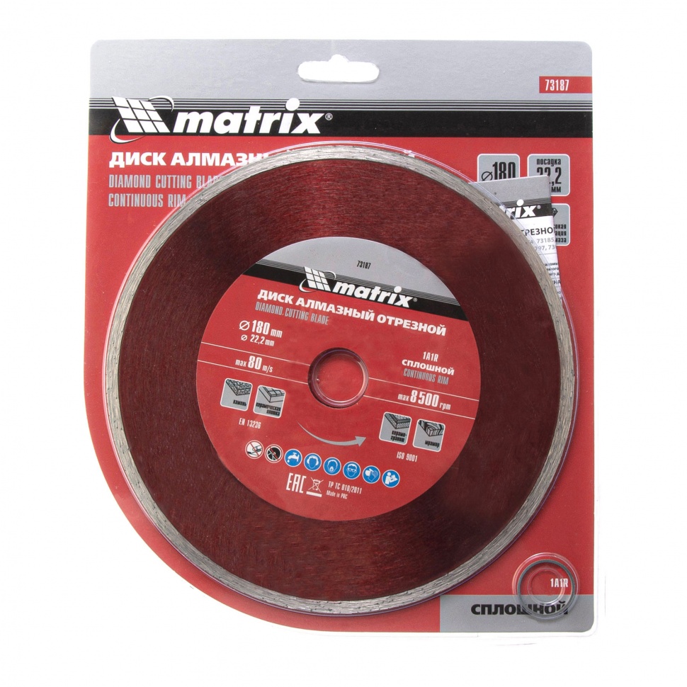Диск алмазный отрезной сплошной Matrix 73187, 180 х 22,2 мм, предназначен для мокрого реза мрамора, керамической плитки, керамогранита, натурального или искусственного камня. Устанавливается на углошлифовальные машины и плиткорезы с посадочным диаметром 22,2 мм. Благодаря использованию водяного охлаждения улучшается качество реза, а также продлевается срок службы диска.ПреимуществаБлагодаря сплошной кромке и использованию водяного охлаждения срез получается ровным, без сколов и трещин.За счет качественного исполнения методом холодного прессования диск долго сохраняет режущие свойства.Связка из металлических компонентов надежно удерживает алмазы, что обеспечивает высокий рабочий ресурс.Рабочий слой шириной 6 мм с высокой концентрацией алмазов гарантирует хорошую производительность диска.