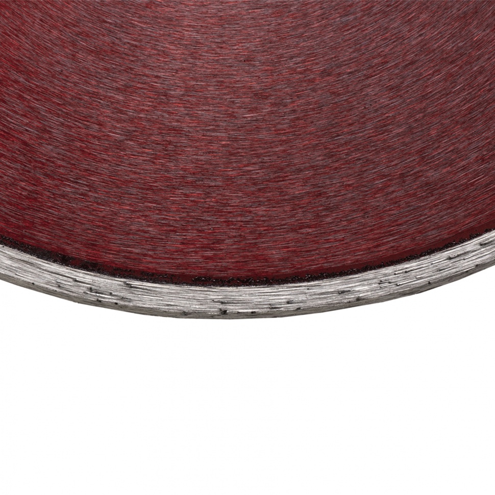 Диск алмазный отрезной сплошной Matrix 73188, 180 х 25,4 мм, предназначен для мокрого реза мрамора, керамической плитки, керамогранита, натурального или искусственного камня. Устанавливается на углошлифовальные машины и плиткорезы с посадочным диаметром 25,4 мм. Благодаря использованию водяного охлаждения улучшается качество реза, а также продлевается срок службы диска.ПреимуществаБлагодаря сплошной кромке и использованию водяного охлаждения срез получается ровным, без сколов и трещин.За счет качественного исполнения методом холодного прессования диск долго сохраняет режущие свойства.Связка из металлических компонентов надежно удерживает алмазы, что обеспечивает высокий рабочий ресурс.Рабочий слой шириной 6 мм с высокой концентрацией алмазов гарантирует хорошую производительность диска.