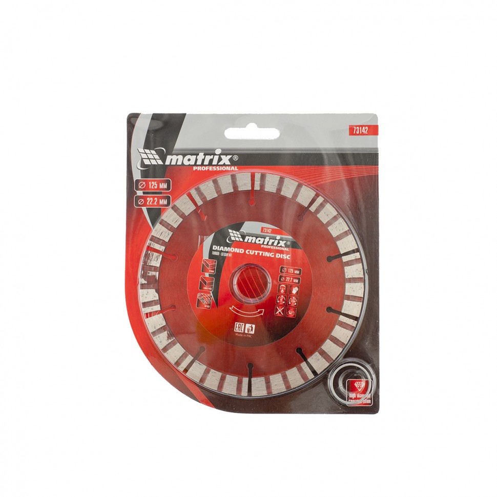Турбо-сегментный отрезной алмазный диск Matrix 73142, 125 х 22,2 мм, предназначен для сухой резки бетона различной прочности, камня, кирпича, тротуарной плитки, шлакоблока. Он устанавливается на углошлифовальные машины с посадочным отверстием 22,2 мм. Благодаря специально подобранной металлической связке диск демонстрирует высокие результаты работы даже при резке слабоармированного железобетона.ПреимуществаЗа счет турбированной поверхности сегментов отрезной круг не нагревается, сохраняет высокую производительность и не требует водяного охлаждения.Ширина рабочего слоя 10 мм и увеличенная концентрация алмазов обеспечивают повышенный ресурс оснастки.Диск устойчив к нагрузкам, изготовлен методом холодного прессования.Диск оптимально подходит для бытового применения, рассчитан на долгую службу.