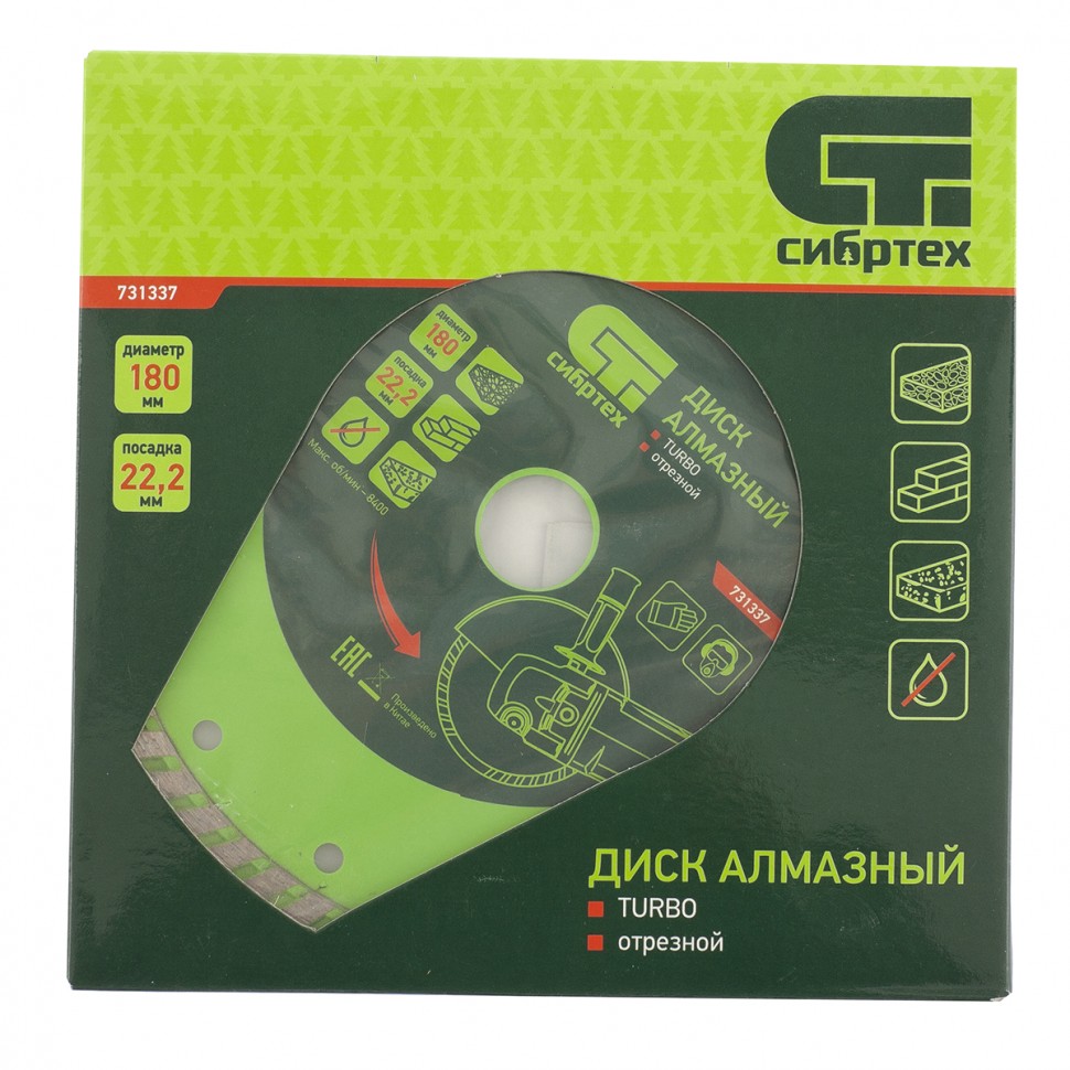 Алмазный отрезной диск Сибртех Turbo 731337 для сухой резки, 180 х 22,2 мм, устанавливается на углошлифовальные машинки и предназначен для использования в быту. Он позволяет резать твердые материалы - бетон, железобетон, камень, песчаник.ПреимуществаТурбированная рабочая часть с перфорацией эффективно отводит тепло и шлам, поэтому диск можно использовать для быстрой сухой резки без водяного охлаждения.Диск изготовлен методом холодного прессования, за счет чего успешно противостоит высоким нагрузкам.Алмазный слой шириной 6 мм обеспечивает хорошее качество реза.