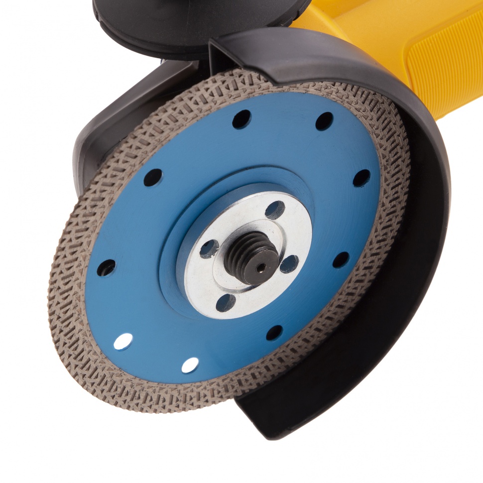 Тонкий сплошной алмазный диск Барс ф115х22,2 мм 73091 с особой формой рабочей части применяется как для сухого, так и мокрого резания гранита и керамогранита, плитки, кафеля, мрамора, искусственного и натурального камня с помощью УШМ или плиткореза. Уменьшенная толщина диска позволяет снизить нагрузку на рабочий инструмент при резке керамогранита и других твердых материалов. Диск предназначен для профессиональной эксплуатации. Использование водяного охлаждения увеличивает ресурс диска и снижает вероятность получения сколов.ПреимуществаСплошная конструкция с перфорацией гарантирует быстрый качественный рез без сколов.В состав специально подобранной под тип диска связки включены тугоплавкие соединения металлов, поэтому диск выдерживает даже высокие температуры.Режущая кромка шириной 10 мм с высокой концентрацией алмазов повышает скорость и производительность работы.Зона рядом с посадочным отверстием дополнена специальными накладками, что увеличивает прочность всей конструкции.Сетчатый орнамент позволяет снизить трение при работе, таким образом диск охлаждается быстрее.Диск отличается надежностью и обладает высоким ресурсом, т.к. изготовлен по технологии горячего прессования.