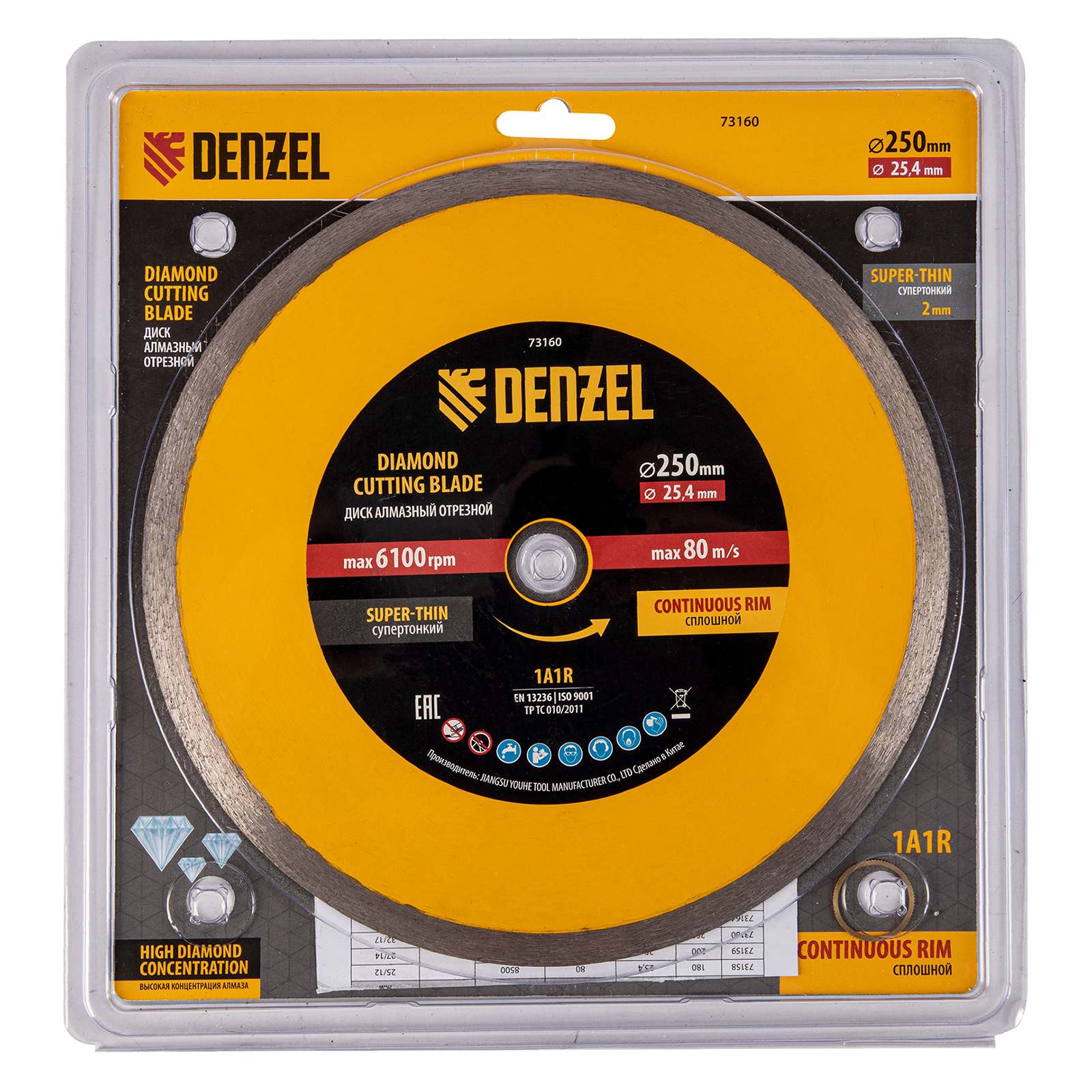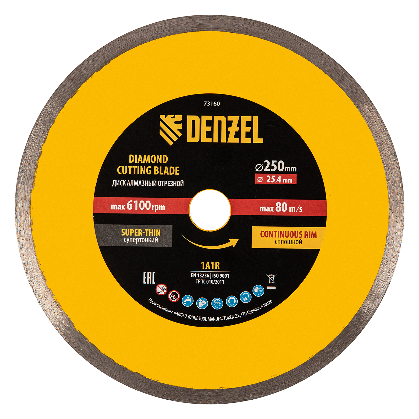 Алмазный диск ТМ Denzel "Сплошной" арт 73160, ф250 х 25,4 мм, предназначен для мокрого резания мрамора, керамогранита и керамическую плитки, камня. Устанавливается на плиткорез или УШМ (болгарку) с посадочным диаметром 25,4 мм. Высокая концентрация алмазов и супертонкая рабочая часть диска обеспечивает идеальную частоту кромок и высокую скорость реза.Диск произведен по технологии горячего прессования с увеличенной шириной режущей кромки (10мм) подходит для профессионального использования и больших объемов работ.