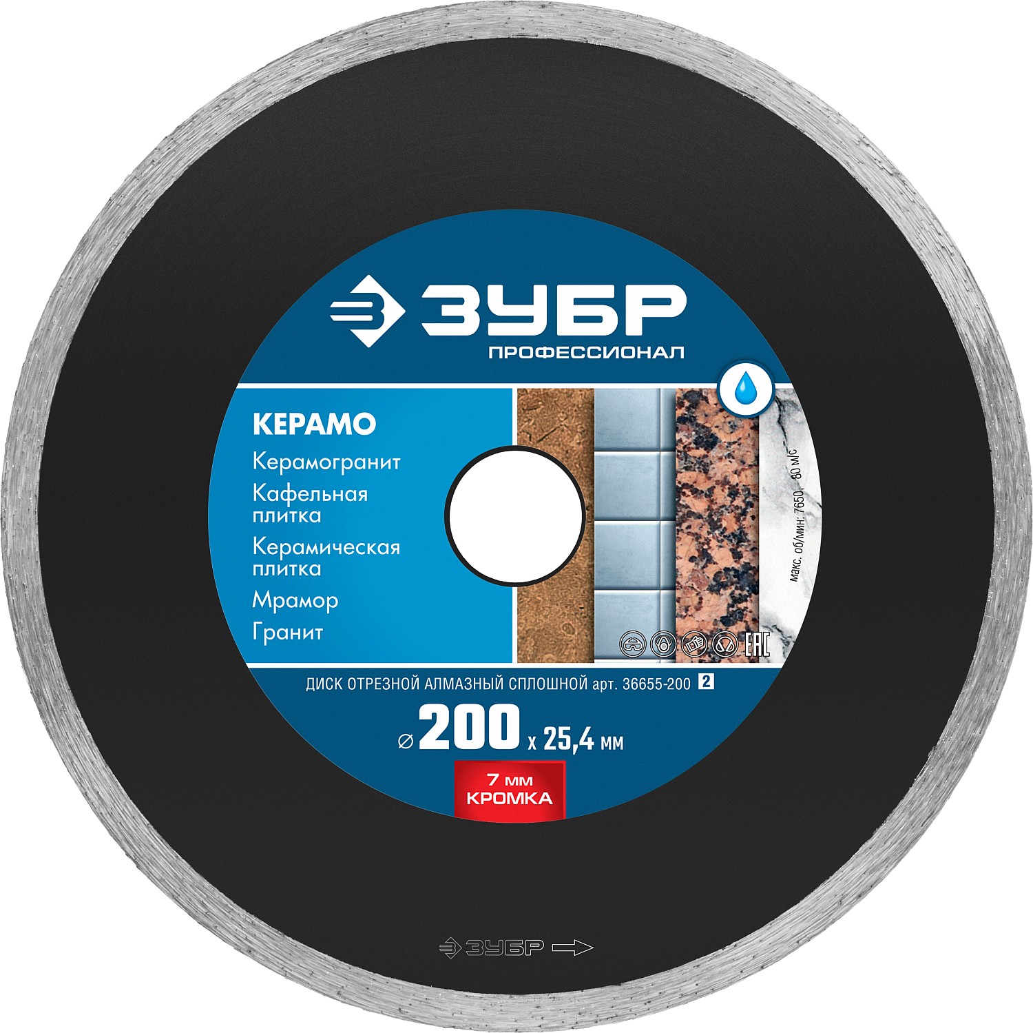 ЗУБР Керамо-25, d 200 мм, (25.4 мм, 7 х 2.2 мм), сплошной алмазный диск, Профессионал (36655-200)