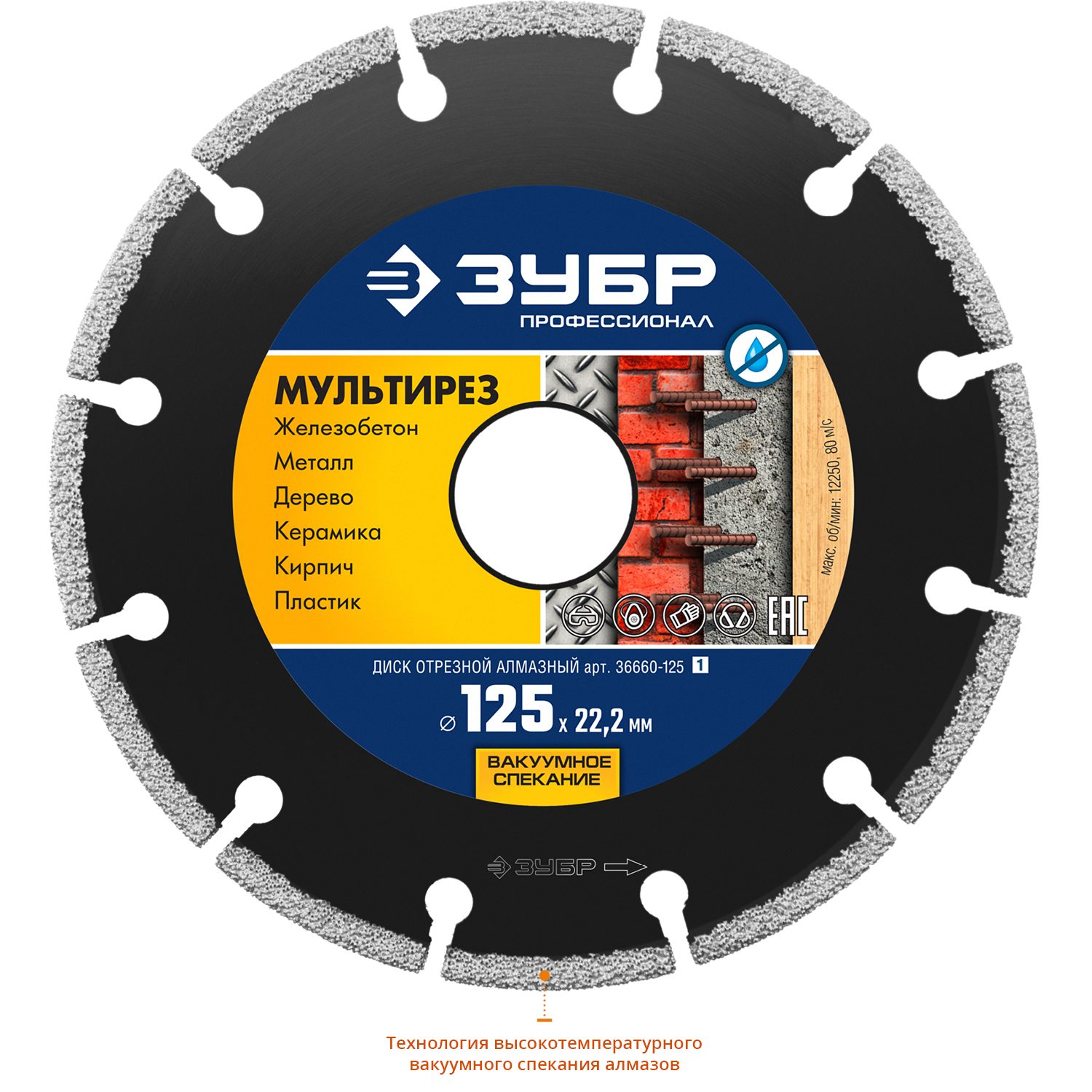 Исключительно высокий уровень качества отрезных алмазных дисков ЗУБР гарантирован комплексной системой контроля всего процесса производства: от качества поступающего сырья до готовой продукции. Корпуса алмазных дисков изготовлены из прочной легированной стали, способной выдержать значительную механическую нагрузку и высокую температуру.