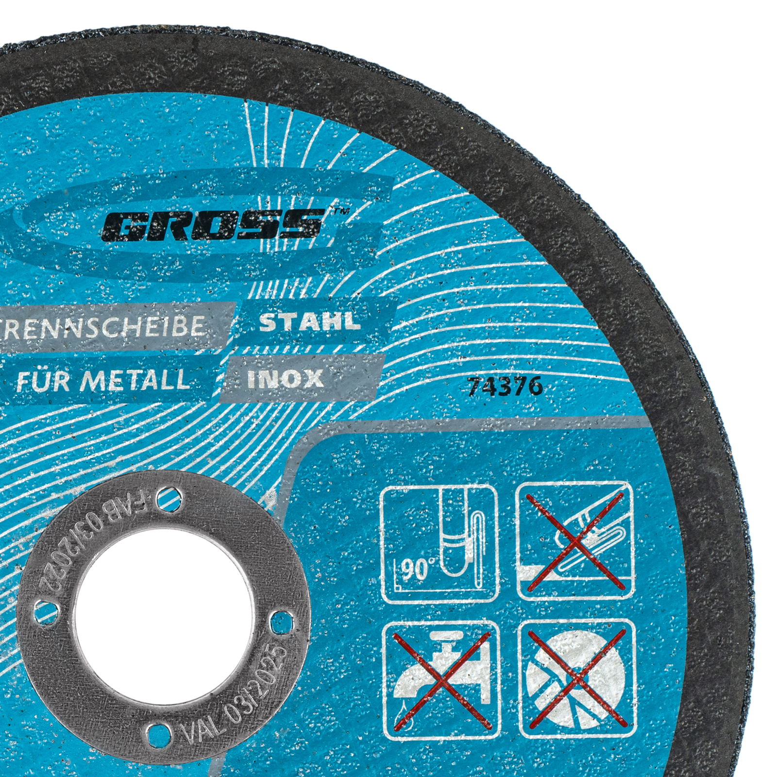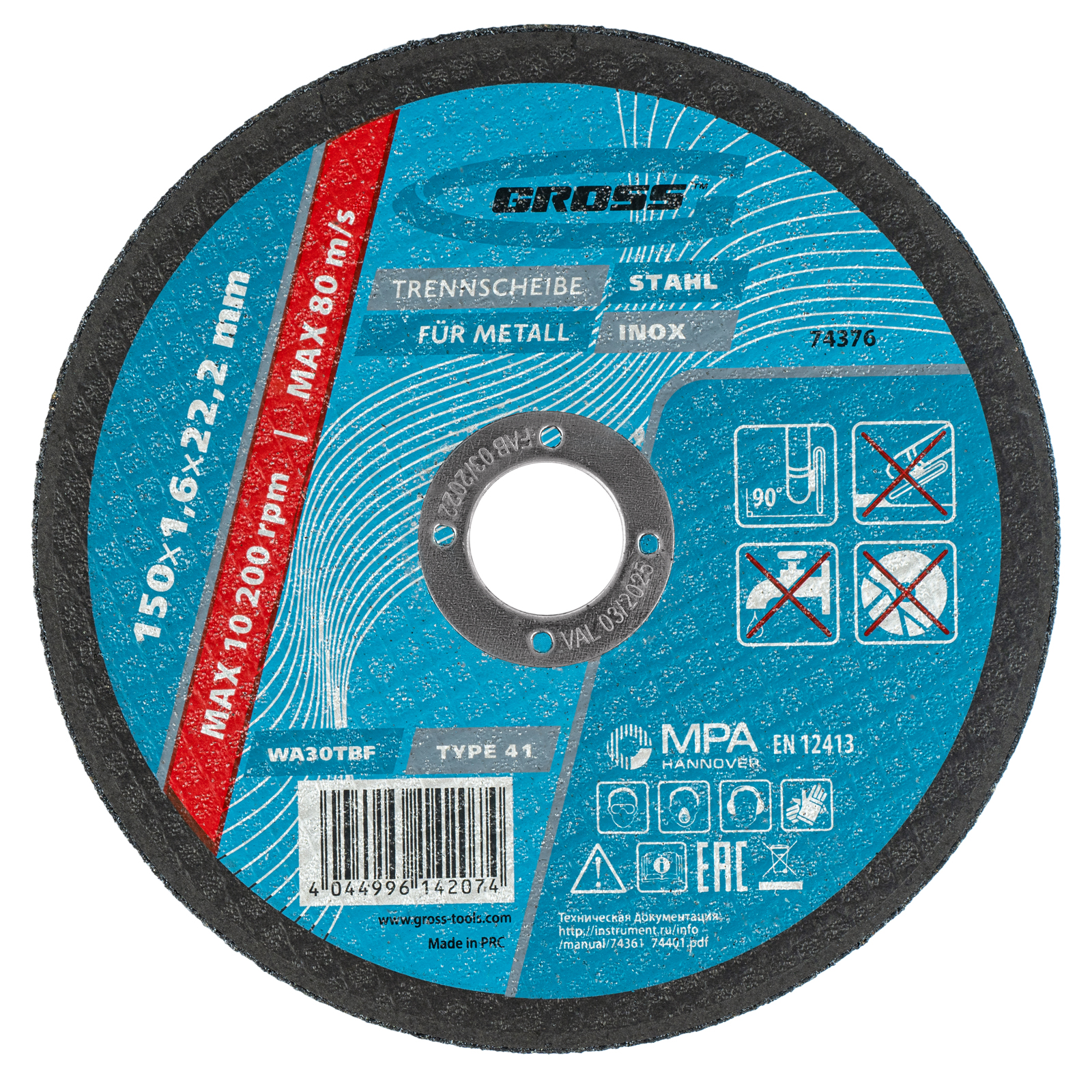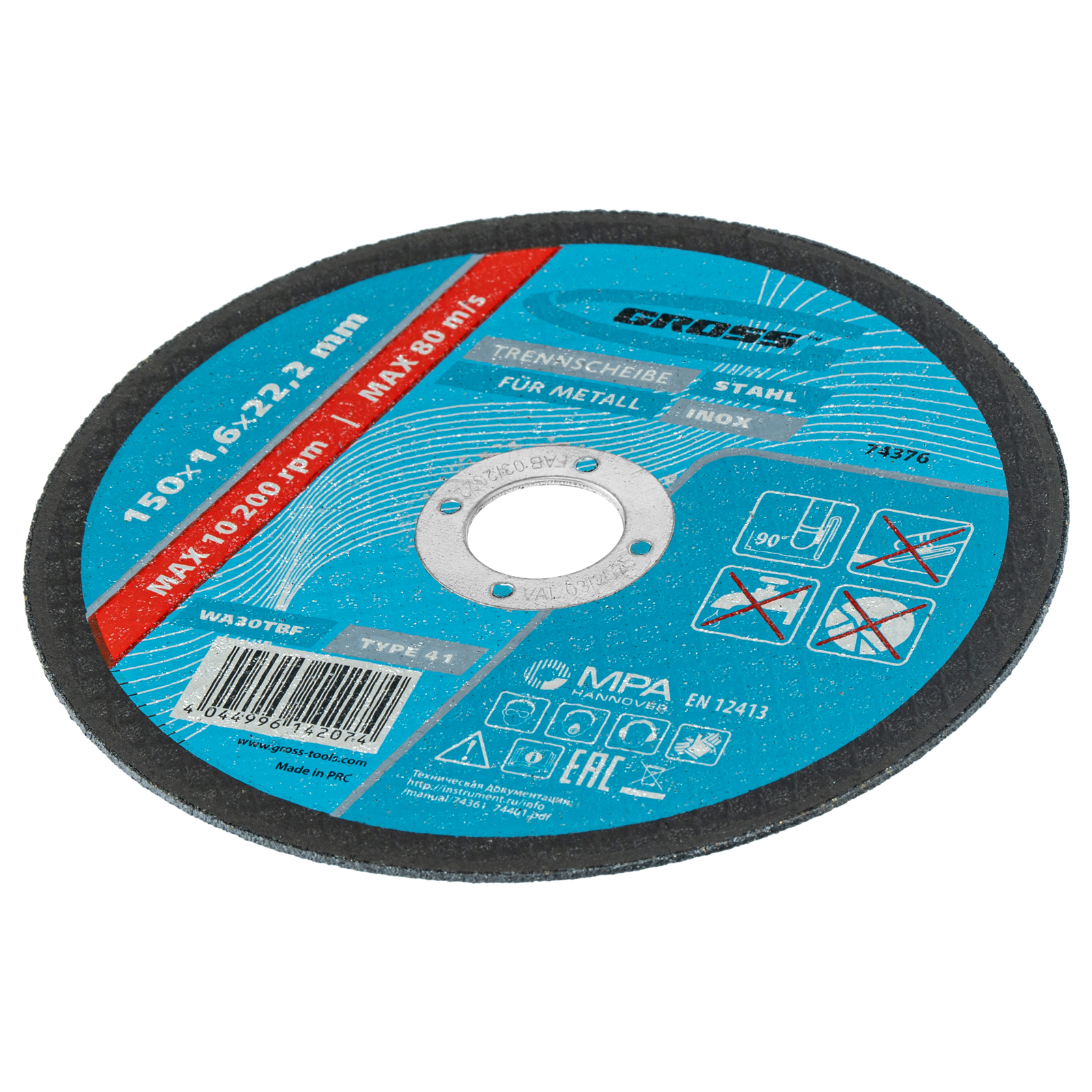 Отрезной круг по металлу Gross WA46TBF 74376, 150 х 1,6 х 22,2 мм, рассчитан на интенсивный сухой рез нержавеющих легированных и углеродистых сталей. Устанавливается на УШМ соответствующего типоразмера. Надежный и производительный, круг подходит для профессиональной эксплуатации с высокими нагрузками.ПреимуществаАбразив из монокорунда с добавками - зерно обладает высокой твердостью и прочностью, подтачивается в процессе работы, поэтому эффективность реза не снижается.Очень высокий ресурс - в бакелитовую связку и абразив включены специальные добавки.Безопасность работы - высококачественная двухслойная стеклосетка защищает круг от перегрузок, предотвращая его разлет в случае зажатия в материале.Специальный состав - круг слабо нагревается в процессе реза, износ происходит медленно и равномерно, поэтому образуется минимальное количество пыли и искр.Толщина 1,6 мм и крупный абразив F46 - круг обеспечивает высокую скорость и точность реза.Плотная равномерная структура - круг прошел дополнительное тестирование на дисбаланс, это обеспечивает стабильность и точность работы.Проверенное качество - круг прошел контроль на всех этапах производства, что подтверждено ганноверским и российским сертификатами безопасности.