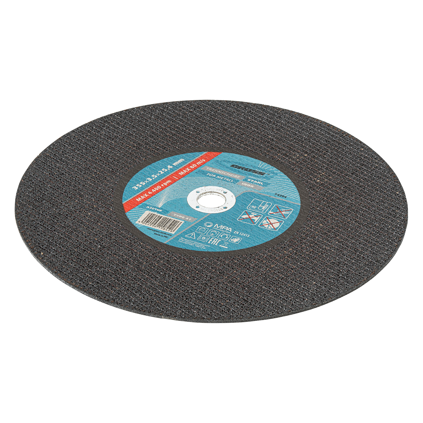 Отрезной круг по металлу Gross WA24TBF 74394, 355 х 3,5 х 25,4 мм, рассчитан на интенсивный сухой рез нержавеющих легированных и углеродистых сталей. Устанавливается на УШМ соответствующего типоразмера. Надежный и производительный, круг подходит для профессиональной эксплуатации с высокими нагрузками.ПреимуществаАбразив из монокорунда с добавками - зерно обладает высокой твердостью и прочностью, подтачивается в процессе работы, поэтому эффективность реза не снижается.Очень высокий ресурс - в бакелитовую связку и абразив включены специальные добавки.Безопасность работы - высококачественная двухслойная стеклосетка защищает круг от перегрузок, предотвращая его разлет в случае зажатия в материале.Специальный состав - круг слабо нагревается в процессе реза, износ происходит медленно и равномерно, поэтому образуется минимальное количество пыли и искр.Толщина 3,5 мм и крупный абразив F24 - износостойкий круг легко выдерживает интенсивное использование.Плотная равномерная структура - круг прошел дополнительное тестирование на дисбаланс, это обеспечивает стабильность и точность работы.Проверенное качество - круг прошел контроль на всех этапах производства, что подтверждено ганноверским и российским сертификатами безопасности.