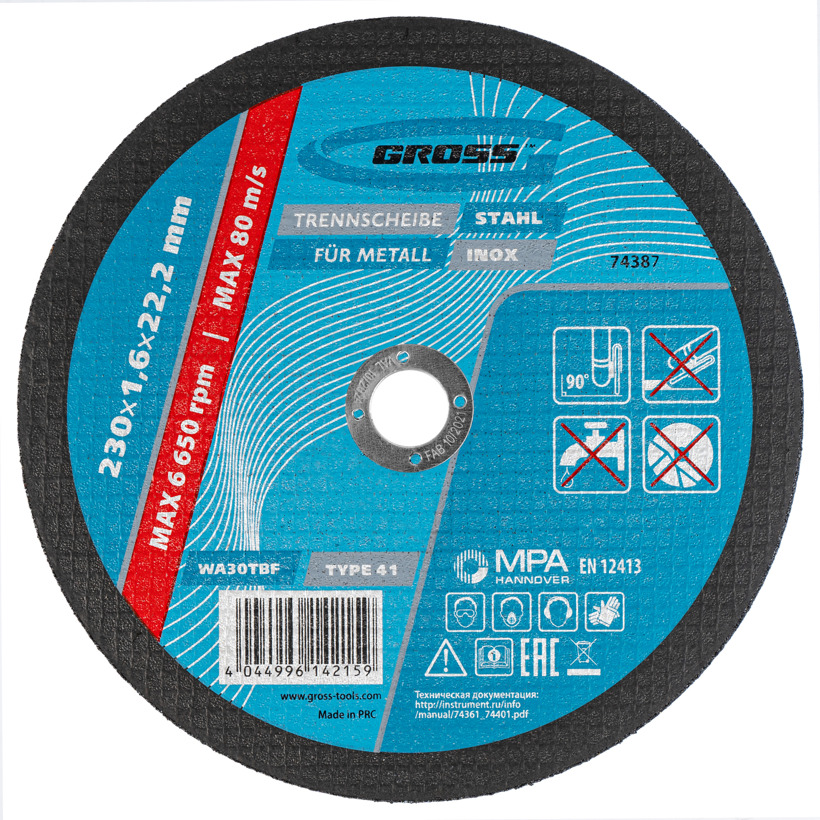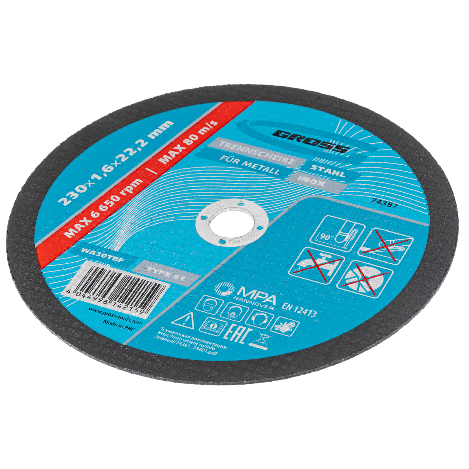 Отрезной круг по металлу Gross WA46TBF 74387, 230 х 1,6 х 22,2 мм, рассчитан на интенсивный сухой рез нержавеющих легированных и углеродистых сталей. Устанавливается на УШМ соответствующего типоразмера. Надежный и производительный, круг подходит для профессиональной эксплуатации с высокими нагрузками.ПреимуществаАбразив из монокорунда с добавками - зерно обладает высокой твердостью и прочностью, подтачивается в процессе работы, поэтому эффективность реза не снижается.Очень высокий ресурс - в бакелитовую связку и абразив включены специальные добавки.Безопасность работы - высококачественная двухслойная стеклосетка защищает круг от перегрузок, предотвращая его разлет в случае зажатия в материале.Специальный состав - круг слабо нагревается в процессе реза, износ происходит медленно и равномерно, поэтому образуется минимальное количество пыли и искр.Толщина 1,6 мм и крупный абразив F46 - круг обеспечивает высокую скорость и точность реза.Плотная равномерная структура - круг прошел дополнительное тестирование на дисбаланс, это обеспечивает стабильность и точность работы.Проверенное качество - круг прошел контроль на всех этапах производства, что подтверждено ганноверским и российским сертификатами безопасности.