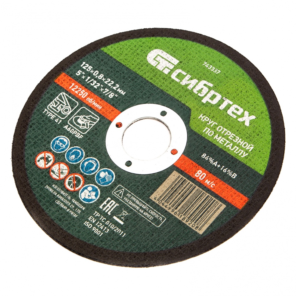 Отрезной круг по металлу Сибртех 743337, 125 х 0,8 х 22,2 мм, используется в качестве оснастки на УШМ для сухого реза изделий из углеродистых сталей: труб, арматуры, проволоки и т.д. Высокая производительность позволяет использовать круг как в быту, так и в частной мастерской или на небольших производствах.ПреимуществаАбразивные зерна из оксида алюминия имеют острые грани и легко справляются с резкой твердых материалов.Двухслойная усиленная стеклосетка придает кругу прочность на разрыв, что повышает безопасность работы.Бакелитовая связка с упрочняющими элементами обеспечивает максимальную износостойкость круга.Круг быстро режет материалы, позволяя получить аккуратный срез.Круг отличается превосходным качеством, т.к. изготовлен на высокотехнологичном оборудовании квалифицированным персоналом.