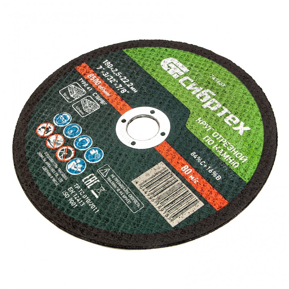 Отрезной круг по камню Сибртех 743687, 180 х 2,5 х 22,2 мм, используется в качестве оснастки на УШМ для сухого реза камня, огнеупорного кирпича, бетонных изделий, керамической плитки. Высокая производительность позволяет использовать круг как в быту, так и в частной мастерской или на небольших производствах.ПреимуществаАбразивные зерна из карбида кремния имеют острые грани и легко справляются с резкой твердых материалов.Двухслойная усиленная стеклосетка придает кругу прочность на разрыв, что повышает безопасность работы.Бакелитовая связка с упрочняющими элементами обеспечивает максимальную износостойкость круга.Круг быстро режет материалы, позволяя получить аккуратный срез.Круг отличается превосходным качеством, т.к. изготовлен на высокотехнологичном оборудовании квалифицированным персоналом.