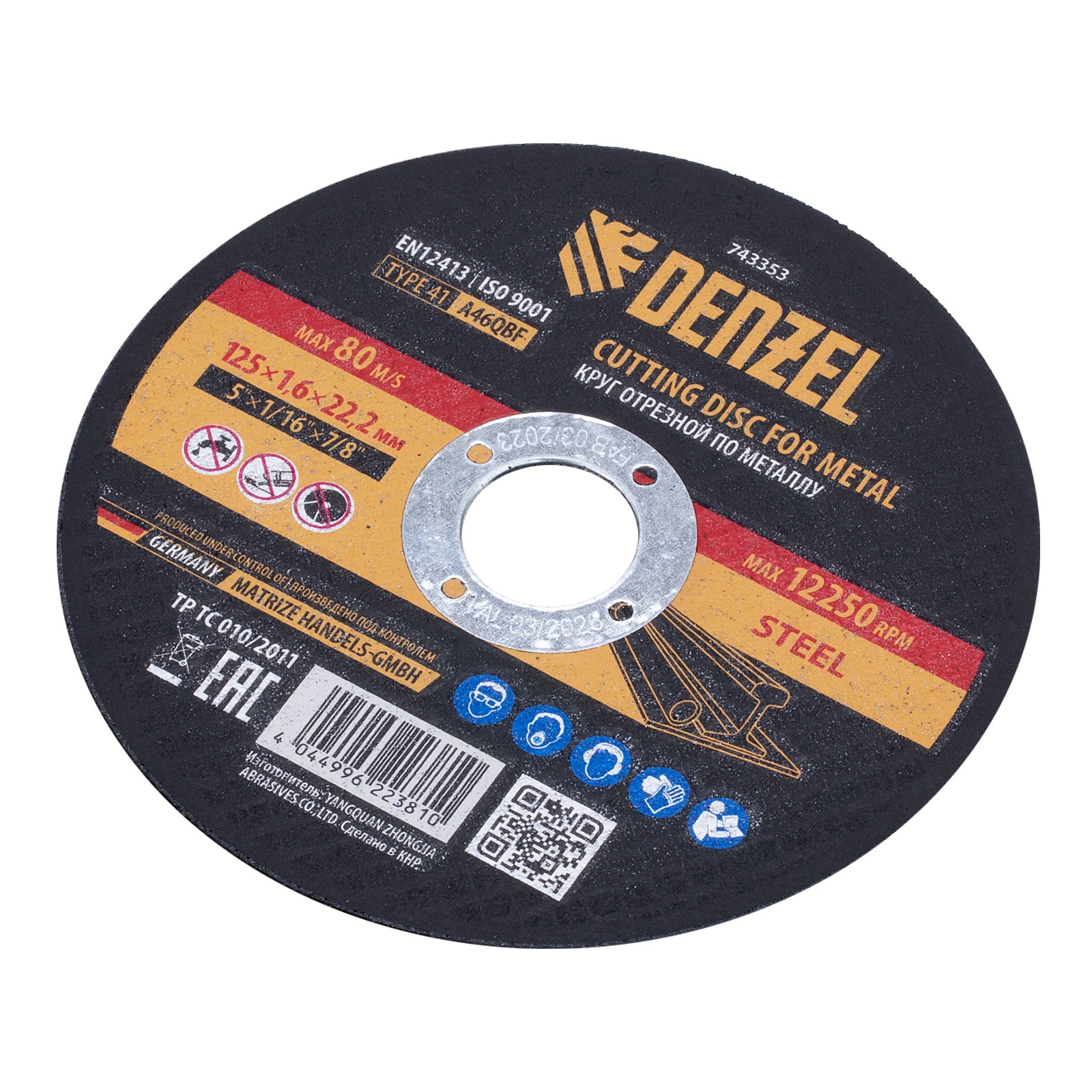 Круг отрезной по металлу Denzel 743353 (A46QBF) размером 125 х 1,6 х 22,2 мм оптимально подходит для реза углеродистых сталей. Используется на УШМ с посадочным диаметром 22,2 мм. Круг рассчитан на профессиональное и бытовое использование, сухой рез.ПреимуществаПовышенный ресурс — абразив из оксида алюминия с добавками обеспечивает высокую скорость реза.Устойчивость к нагрузкам — бакелитовая связка с упрочняющими элементами устойчива к нагреву, поэтому круг не деформируется при интенсивном использовании.Безопасная работа — двухслойная стеклосетка отличается прочностью на разрыв.Толщина 1,6 мм — круг имеет увеличенную прочность на излом.
