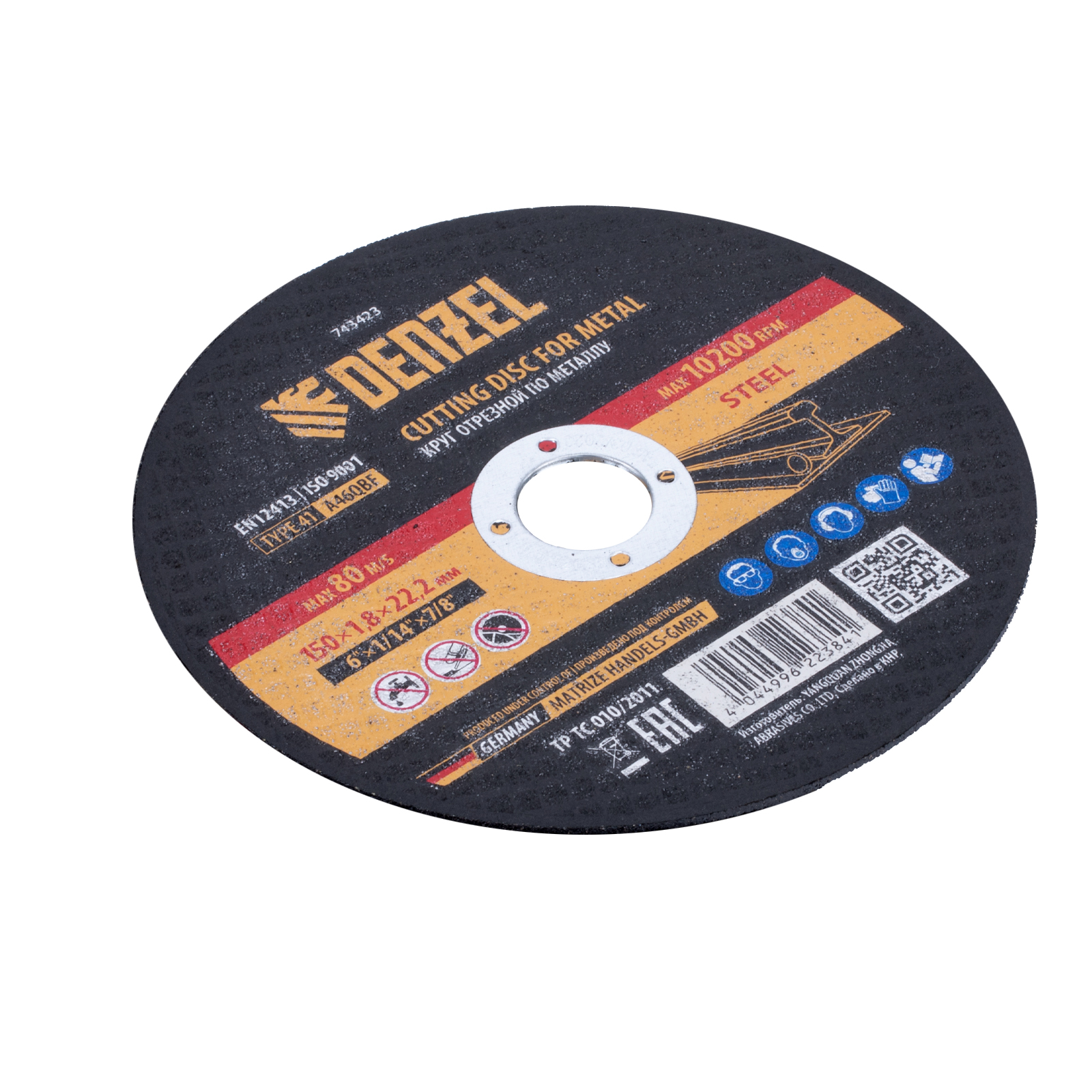 Круг отрезной по металлу Denzel 743423 (A46QBF) размером 150 х 1,8 х 22,2 мм оптимально подходит для реза углеродистых сталей. Используется на УШМ с посадочным диаметром 22,2 мм. Круг рассчитан на профессиональное и бытовое использование, сухой рез.ПреимуществаПовышенный ресурс — абразив из оксида алюминия с добавками обеспечивает высокую скорость реза.Устойчивость к нагрузкам — бакелитовая связка с упрочняющими элементами устойчива к нагреву, поэтому круг не деформируется при интенсивном использовании.Безопасная работа — двухслойная стеклосетка отличается прочностью на разрыв.