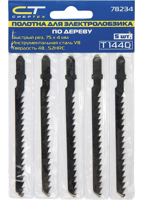Полотна по дереву Сибртех 78234, 5 шт. T144D, 75 х 4мм, устанавливаются на электролобзики в качестве режущего элемента. Они помогают произвести быстрый рез деревянных конструкций. Полотна пригодятся мастерам при выполнении бытовых ремонтных работ.ПреимуществаПрочность и износостойкость — полотна изготовлены из высокоуглеродистой стали У8 и закалены до твердости 48-52 HRC.Шаг зубьев 4 мм — полотна обеспечивают точный и быстрый рез материалов.Удобная упаковка — индивидуальные кармашки для каждого изделия позволяют с удобством хранить набор и предотвращает образование коррозии.5 штук в упаковке — набора хватит надолго.