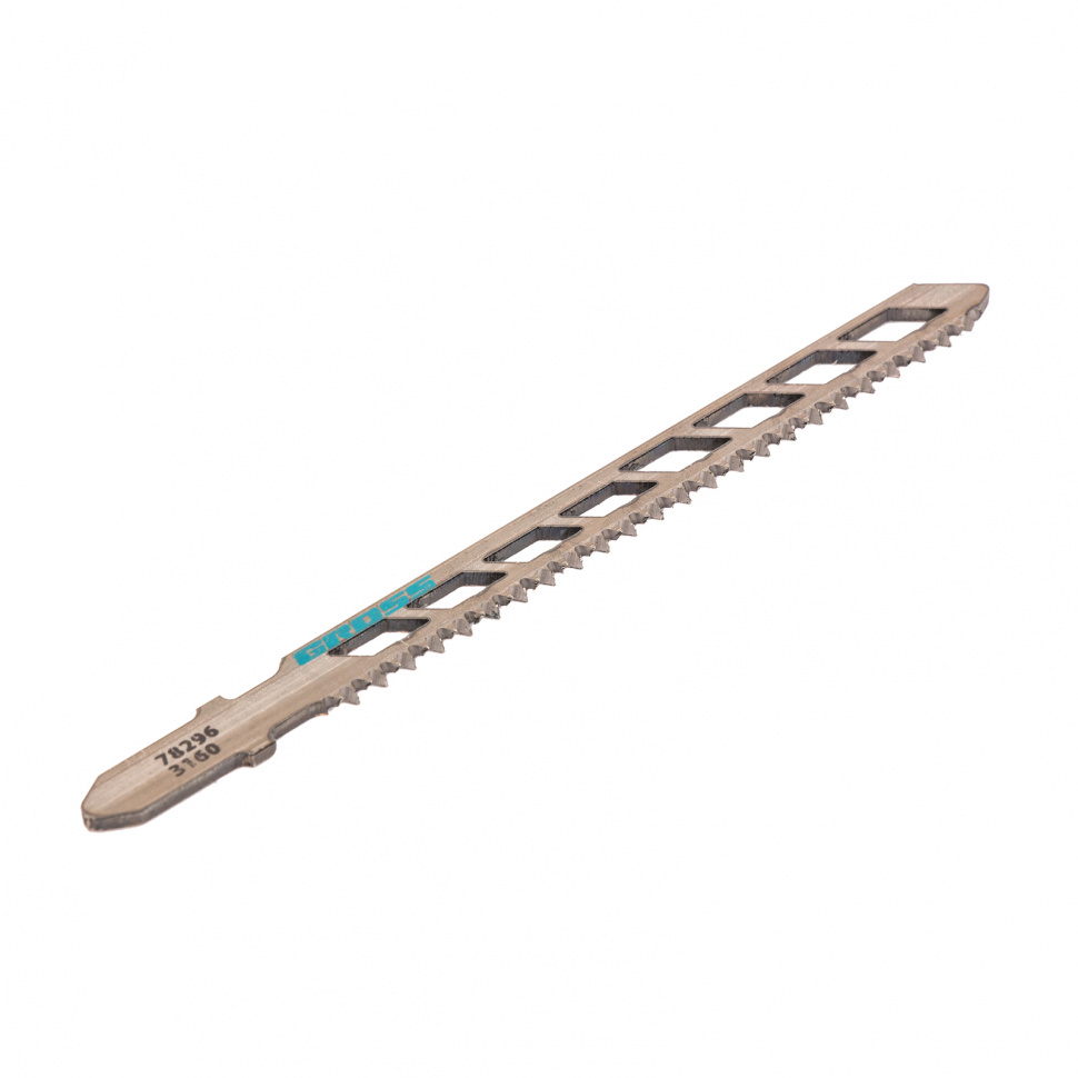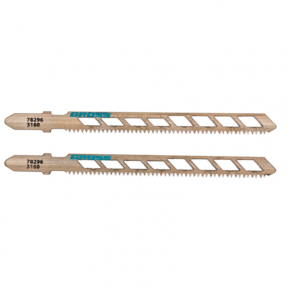 Полотна для электролобзика по дереву Gross 78296, 2 шт. (3160 - PC), служат для улучшенного быстрого и чистого прямого реза заготовок и изделий из древесины, ДСП, ДВП, МДФ, фанеры, пластика. Благодаря длине 75 мм они справляются с распилом материалов толщиной 3-60 мм. Шаг зубьев 2 мм повышает точность распила.ПреимуществаДолговечность и надежность — полотна произведены в Германии из хромованадиевой стали с повышенным содержанием углерода.Высокая твердость и устойчивость к износу — режущие части прошли закалку в вакуумных печах.Технологические отверстия — полотна обеспечивают высокую скорость реза, эффективный отвод шлама и получение аккуратного среза.