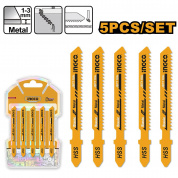 Набор пильных полотен по металлу INGCO JBT118B предназначен для реза листового металла толщиной 2,5-6 мм, как рабочий элемент электролобзиков. Материал полотна - высокопроизводительная быстрорежущая сталь (HSS). Рабочая длина - 50 мм. Шаг зубьев: 1,9-2,3 мм. В комплекте 5 лезвий.