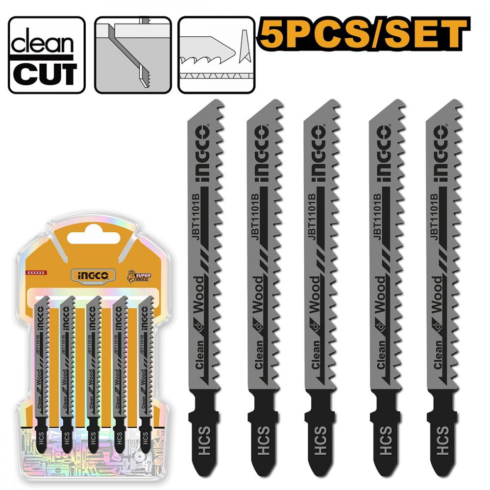 Пильное полотно для элеткролобзика по дереву 5шт. 74мм-HCS-10TPI INGCO JBT1101B предназначен для резки ДСП, ДВП, древесины, в том числе из хвойных пород, как рабочий элемент электролобзиков.