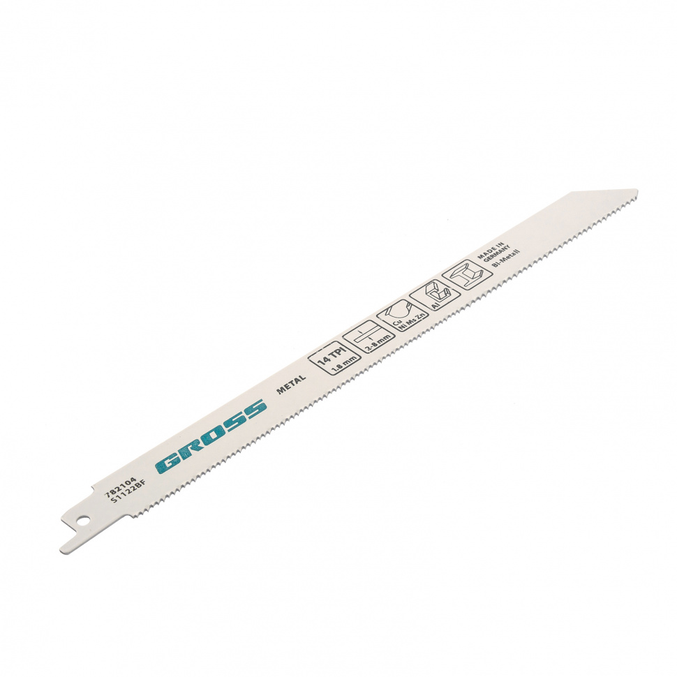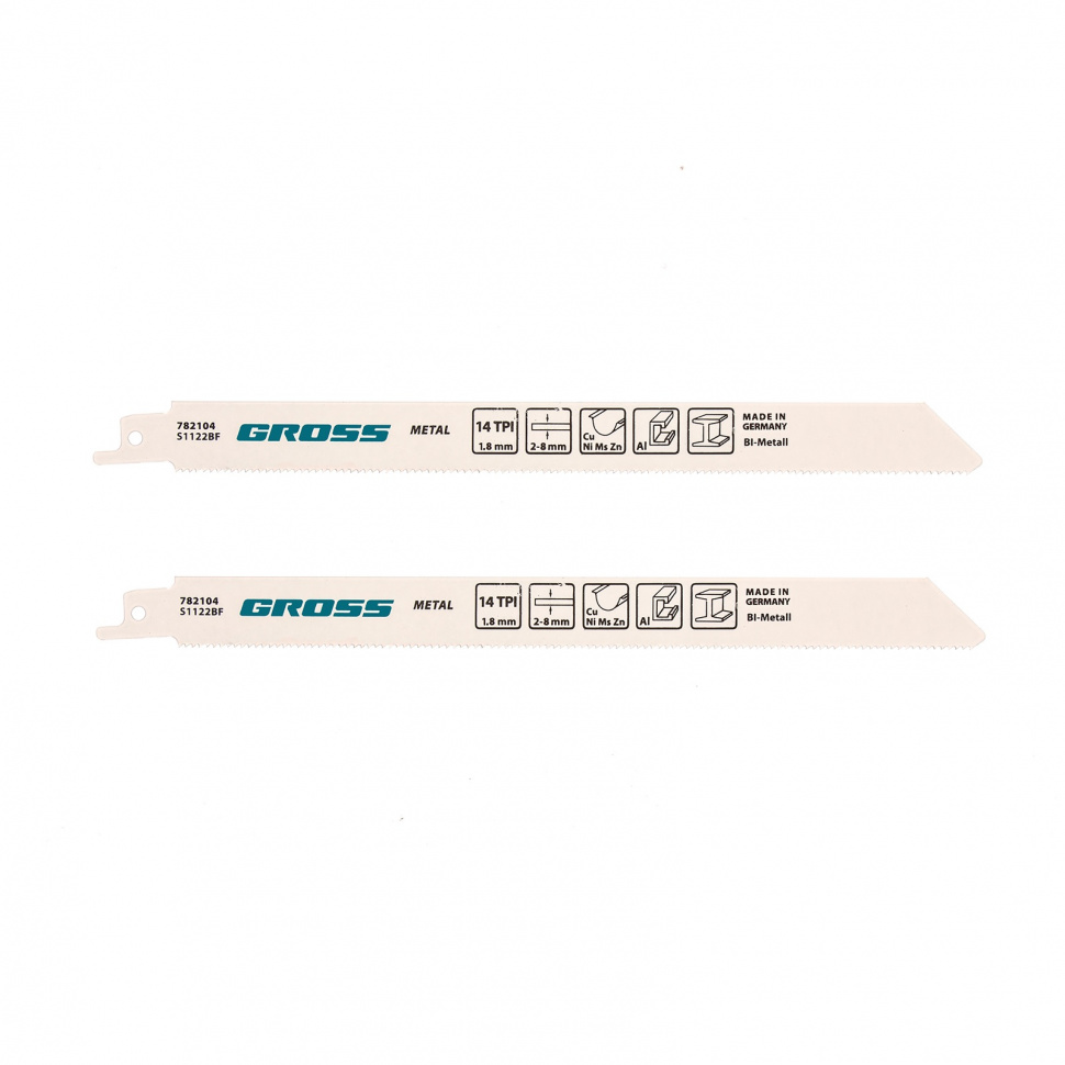 Полотна по металлу Gross 782104, 4416 - S1122BF, размером 210 x 1,8 мм, 2 шт., являются оснасткой для сабельной пилы. Они рассчитаны на профессиональное применение при проведении строительных и ремонтных работ. С помощью полотен можно осуществлять точный рез металлических заготовок толщиной до 8 мм.ПреимуществаВысококачественное исполнение — биметаллические полотна сделаны в Германии, характеризуются износостойкостью и долговечностью.Закаленные зубья — соотношение твердости и прочности в несколько раз повышает режущую способность полотен.Мелкий шаг зубьев — с помощью полотен можно проводить сверхточные работы.Интенсивное использование — зубья обеспечивают эффективность работы даже при нагреве.Комплект из двух полотен — их хватит на долго.