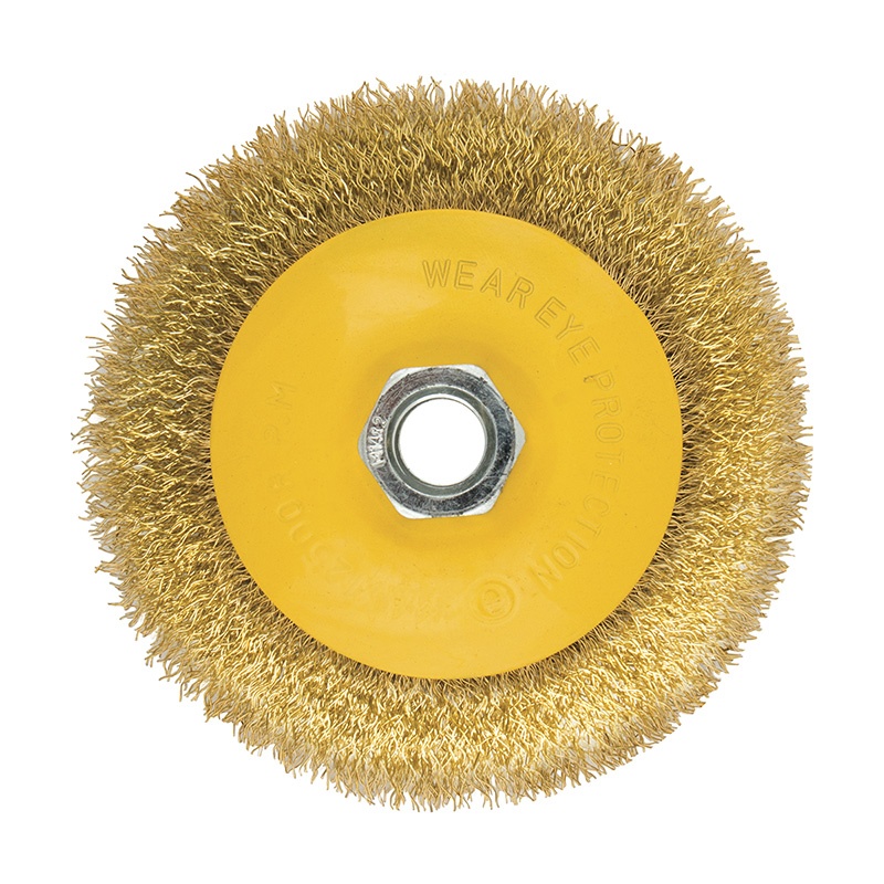 Используется в качестве насадки для УШМ (болгарок) для крацевания поверхностей. Посадочное отверстие - гайка М14. Стальная проволока диаметром 0,3 мм с антикоррозийным покрытием.
