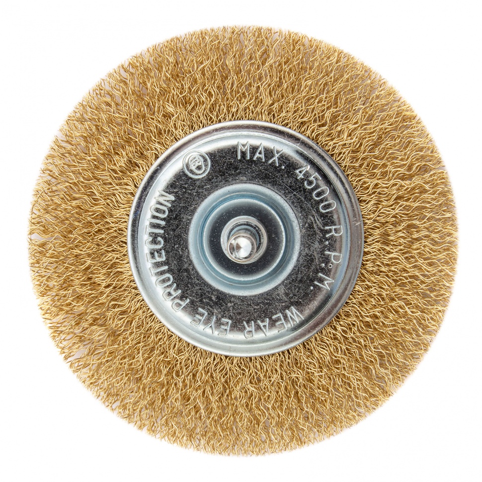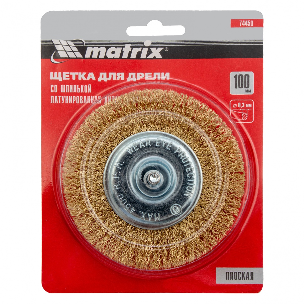 Плоская щетка для дрели Matrix 74450 диаметром 100 мм, со шпилькой, с щетиной из латунированной витой проволоки, предназначена для бережной очистки металлических, деревянных, пластиковых поверхностей от загрязнений, старых лакокрасочных материалов и ржавчины. Витая проволока диаметром 0,3 мм проникает в труднодоступные места: пазы, углы, изгибы, узкие участки. Насадку применяют для придания поверхности нужной шероховатости или подчеркивания структуры материала. Хвостовик диаметром 6 мм устанавливается в патрон электродрели, способной работать на рекомендуемой скорости 4500 об/мин. Во время работы следует использовать защитные очки, респиратор, наушники, спецодежду и обувь.ПреимуществаЩетина изготовлена из высококачественной стальной проволоки, что обеспечивает долговечность оснастки.Корпус имеет цинковое покрытие, а щетина — латунированное, поэтому щетка устойчива к коррозии.Насадка изготовлена на крупном заводе под строгим технологическим контролем, что гарантирует ее высокое качество.Щетка пригодится на строительной площадке, на производственном предприятии, а также будет полезна в быту.