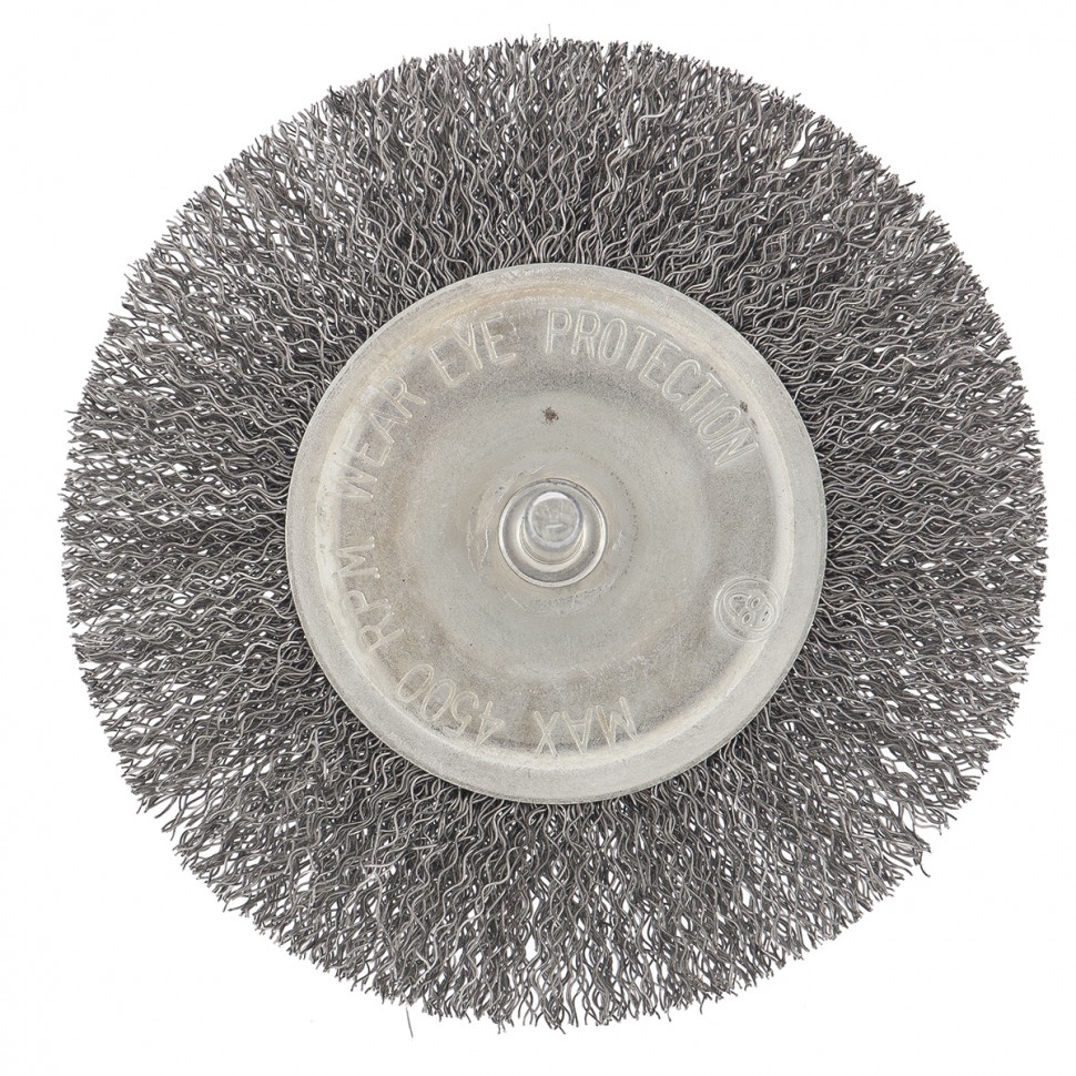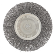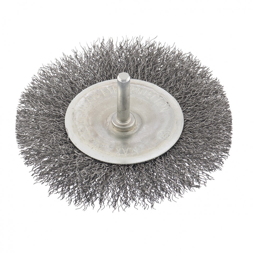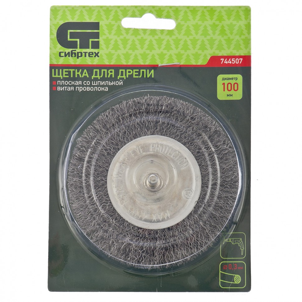 Плоская щетка для дрели Сибртех 744507 диаметром 100 мм, со шпилькой, с щетиной из витой проволоки 0,3 мм, используется для щадящей обработки металлических, деревянных и пластиковых поверхностей. Удаляет загрязнения, ржавчину, старые лакокрасочные покрытия. Благодаря плоской форме щетка идеально подходит для очистки труднодоступных мест, пазов, изгибов, внутренних углов. Хвостовик диаметром 6 мм устанавливается в патрон дрели. Рекомендуемая скорость вращения 4500 об/мин. Во время работы следует использовать средства индивидуальной защиты. Щетку применяют во время строительства, ремонта, а также в быту.ПреимуществаВитая проволока диаметром 100 мм более мягко воздействует на поверхность, чем крученая, поэтому щетку можно использовать для создания необходимой шероховатости или для выявления структуры материала, например, древесины.Для изготовления щетины использована высококачественная сталь, что увеличивает срок службы оснастки.Корпус насадки имеет цинковое покрытие, а щетина покрыта техническим маслом, что обеспечивает защиту от коррозии.