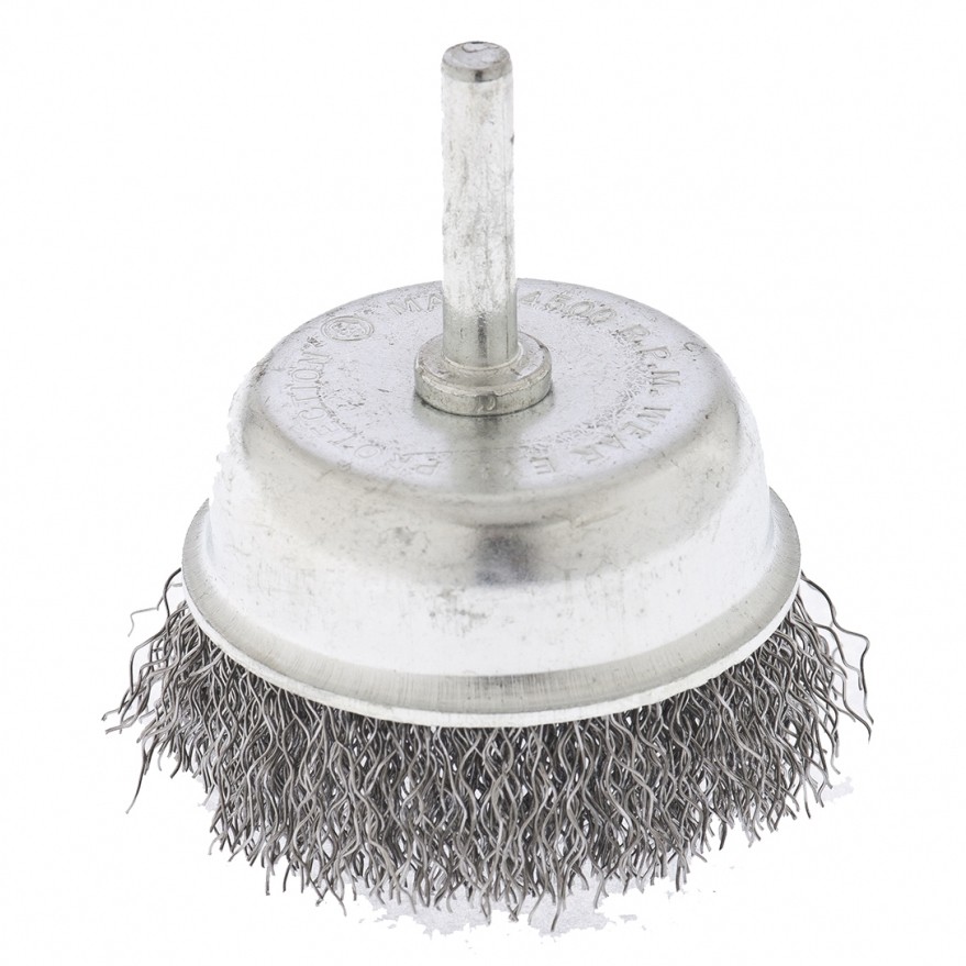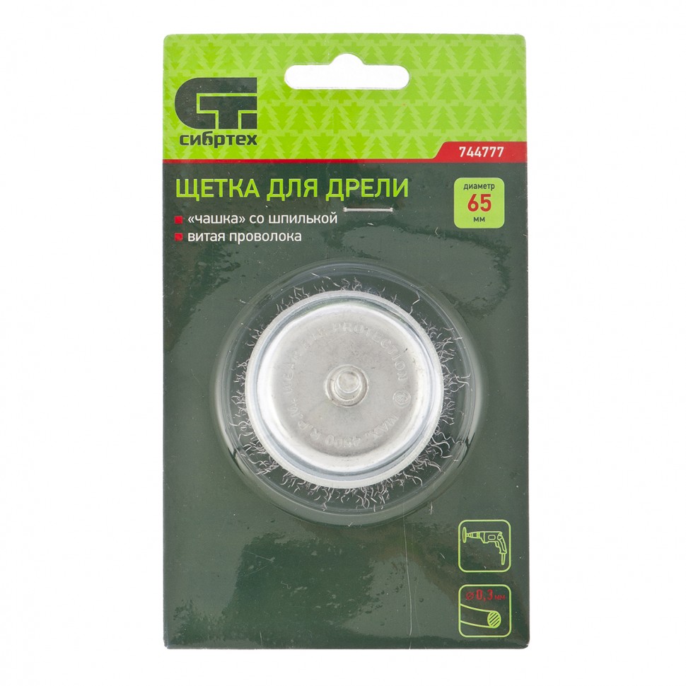Щетка для дрели «чашка» Сибртех 744777 диаметром 65 мм, со шпилькой 6 мм, с щетиной из витой проволоки 0,3 мм, предназначена для щадящей обработки значительных по площади металлических, деревянных и пластиковых поверхностей — удаления загрязнений, остатков краски и лака, придания шероховатости или подчеркивания структуры материала. Щетка имеет форму чашки, что увеличивает площадь прилегания щетины к обрабатываемой поверхности. Насадка с хвостовиком 6 мм устанавливается в патрон электродрели, поддерживающей работу со скоростью 4500 об/мин. Во время работы с инструментом обязательно использование защитной одежды и обуви, очков, респиратора и наушников. Щетку применяют в профессиональной сфере и в быту.ПреимуществаЩетина изготовлена из высококачественной стальной проволоки, обеспечивающей долговечность оснастки.Витая проволока принимает изначальную форму после снятия нагрузок, поэтому щетина не деформируется при интенсивном использовании.На корпус нанесено цинковое покрытие, а на щетину — техническое масло, что обеспечивает защиту от коррозии.