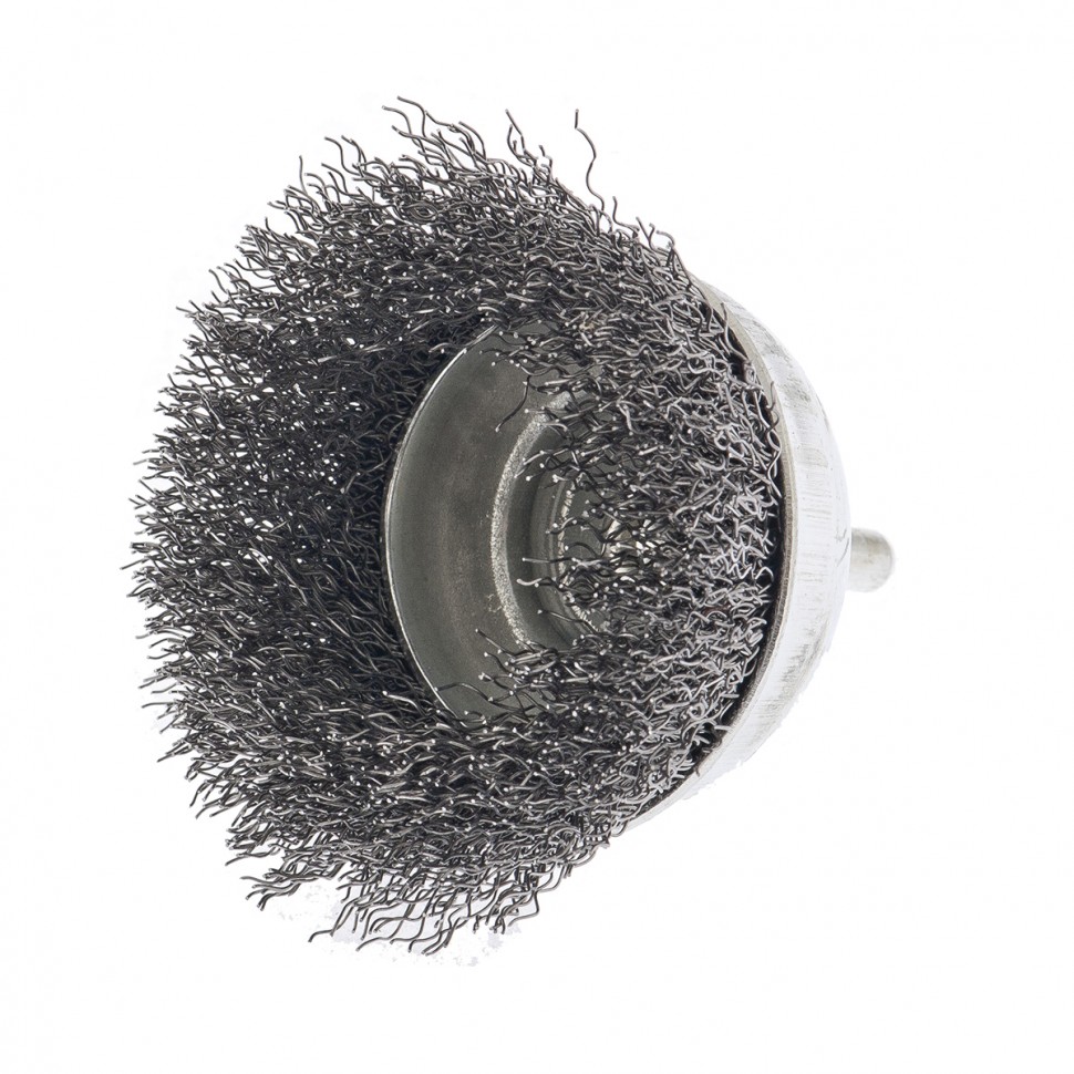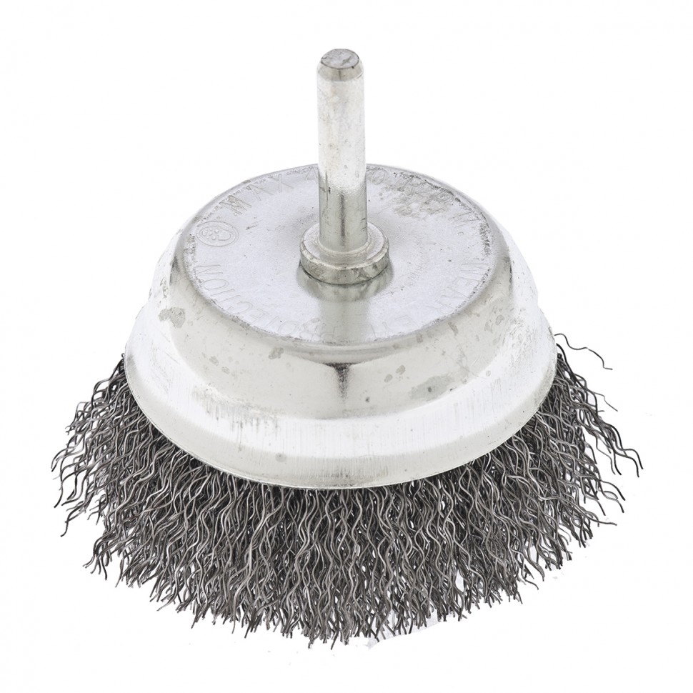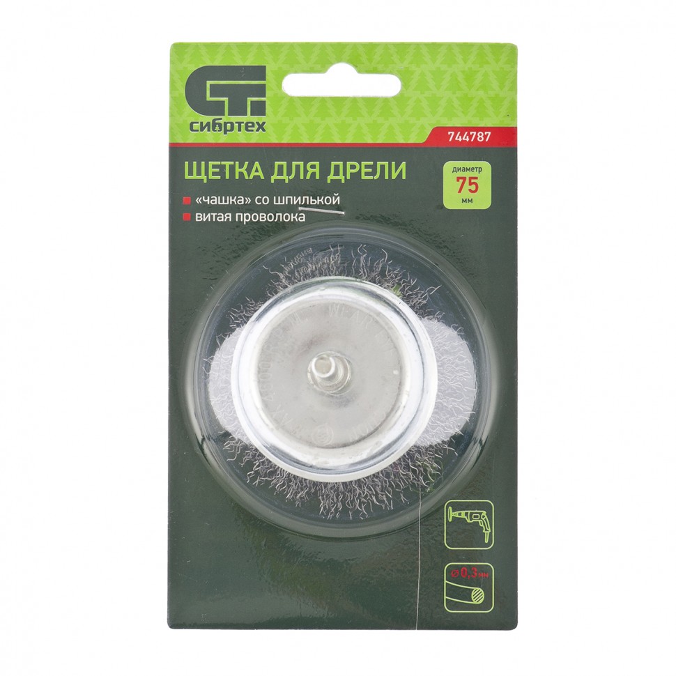 Щетка для дрели «чашка» Сибртех 744787 диаметром 75 мм, со шпилькой 6 мм, с щетиной из витой проволоки 0,3 мм, предназначена для щадящей обработки значительных по площади металлических, деревянных и пластиковых поверхностей — удаления загрязнений, остатков краски и лака, придания шероховатости или подчеркивания структуры материала. Щетка имеет форму чашки, что увеличивает площадь прилегания щетины к обрабатываемой поверхности. Насадка с хвостовиком 6 мм устанавливается в патрон электродрели, поддерживающей работу со скоростью 4500 об/мин. Во время работы с инструментом обязательно использование защитной одежды и обуви, очков, респиратора и наушников. Щетку применяют в профессиональной сфере и в быту.ПреимуществаЩетина изготовлена из высококачественной стальной проволоки, обеспечивающей долговечность оснастки.Витая проволока принимает изначальную форму после снятия нагрузок, поэтому щетина не деформируется при интенсивном использовании.На корпус нанесено цинковое покрытие, а на щетину — техническое масло, что обеспечивает защиту от коррозии.