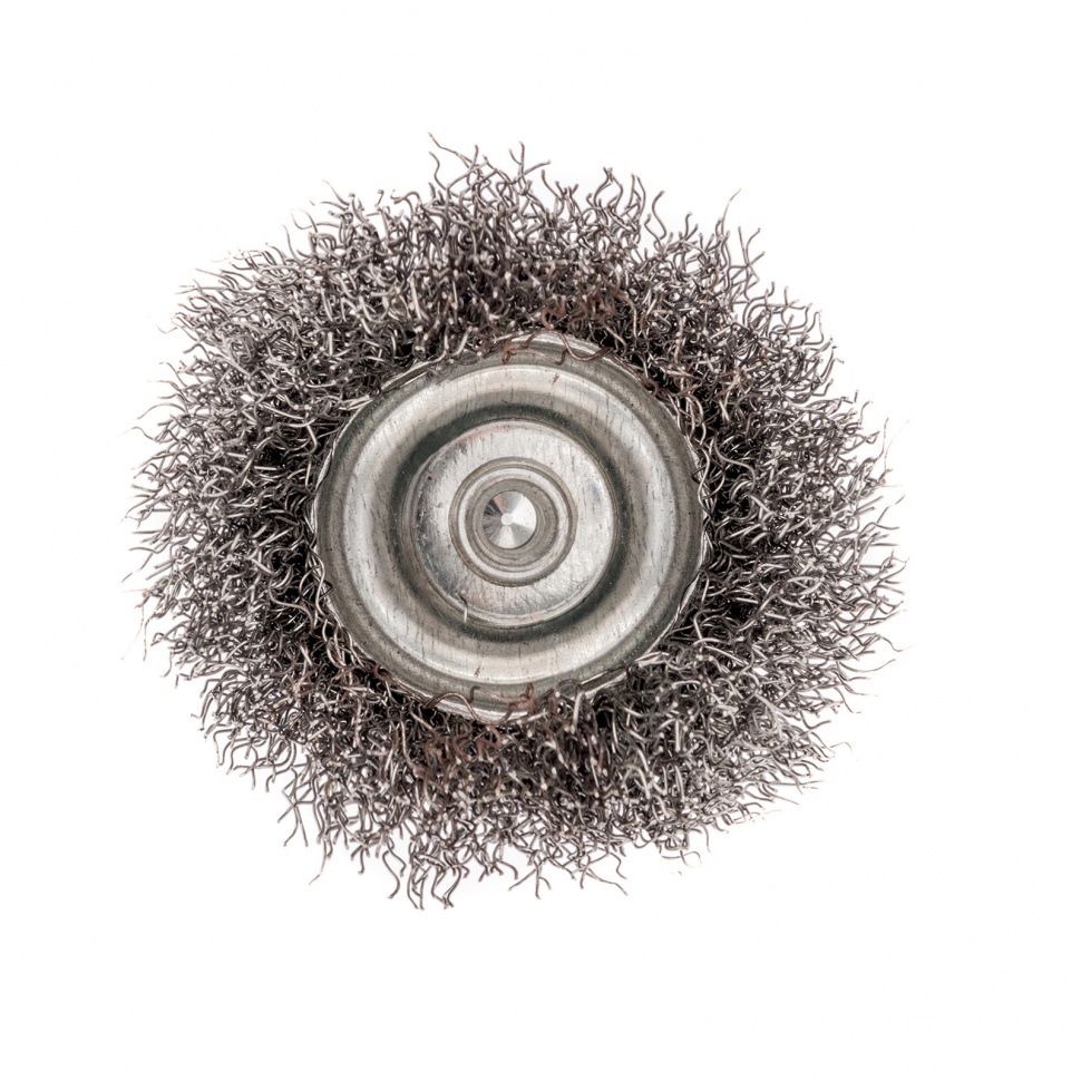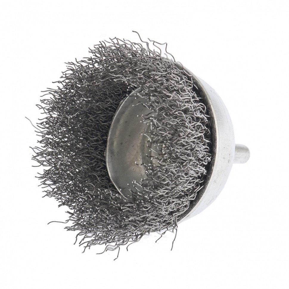 Щетка для дрели «чашка» Сибртех 744757 диаметром 50 мм, со шпилькой 6 мм, с щетиной из витой проволоки 0,3 мм, предназначена для щадящей обработки значительных по площади металлических, деревянных и пластиковых поверхностей — удаления загрязнений, остатков краски и лака, придания шероховатости или подчеркивания структуры материала. Щетка имеет форму чашки, что увеличивает площадь прилегания щетины к обрабатываемой поверхности. Насадка с хвостовиком 6 мм устанавливается в патрон электродрели, поддерживающей работу со скоростью 4500 об/мин. Во время работы с инструментом обязательно использование защитной одежды и обуви, очков, респиратора и наушников. Щетку применяют в профессиональной сфере и в быту.ПреимуществаЩетина изготовлена из высококачественной стальной проволоки, обеспечивающей долговечность оснастки.Витая проволока принимает изначальную форму после снятия нагрузок, поэтому щетина не деформируется при интенсивном использовании.На корпус нанесено цинковое покрытие, а на щетину — техническое масло, что обеспечивает защиту от коррозии.