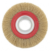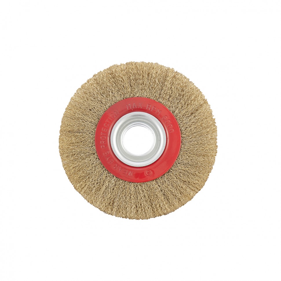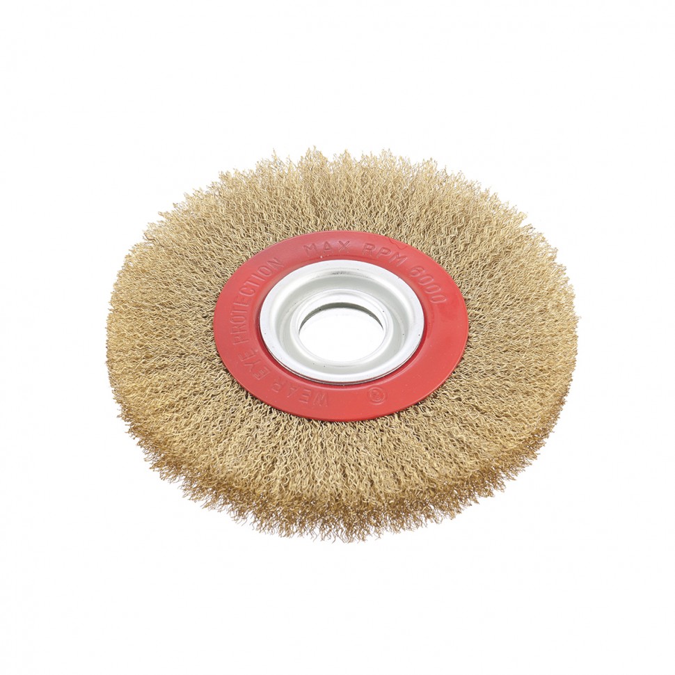 Плоская щетка Matrix 74661 диаметром 175 мм, с щетиной из латунированной витой проволоки, устанавливается на точило с посадочным размером 32 мм. Рекомендуемая скорость вращения — не более 6000 об/мин. Витая проволока позволяет в щадящем режиме зачистить тонкий слой ржавчины и лакокрасочных покрытий, удалить различные загрязнения с небольших или хрупких деталей. Благодаря плоской форме щетка подходит для обработки труднодоступных мест.ПреимуществаДеформационная стойкость — витая проволока из стали хорошо держит форму даже при высоких нагрузках.Решение широкого спектра задач — оснастка подходит для обработки древесины, пластика, металлов, в том числе цветных, а также других материалов.Защита от разрушения — оцинкованный корпус и латунированная щетина устойчивы к коррозии.