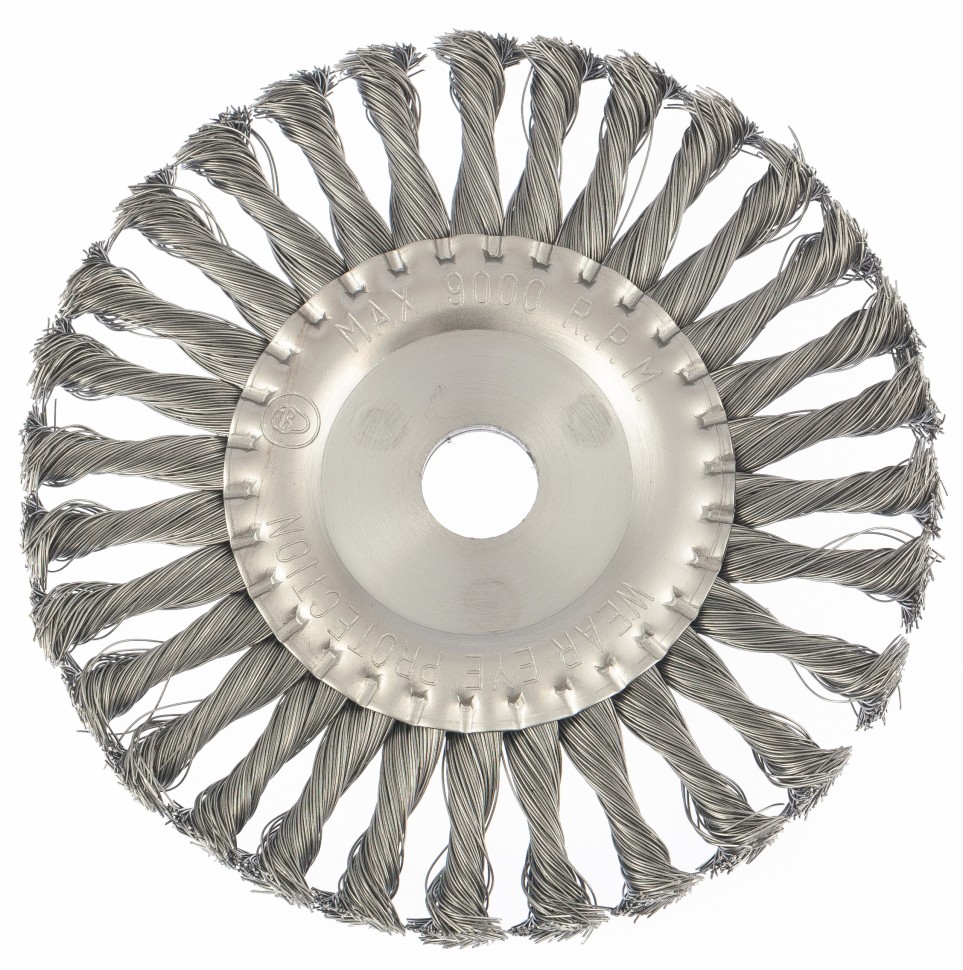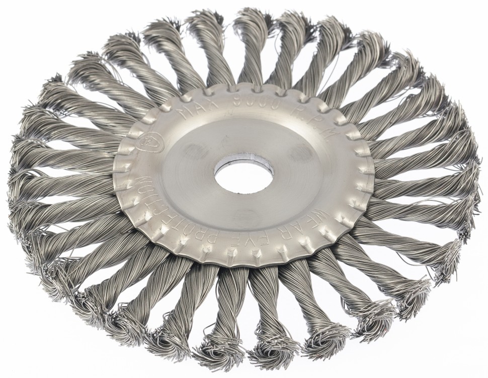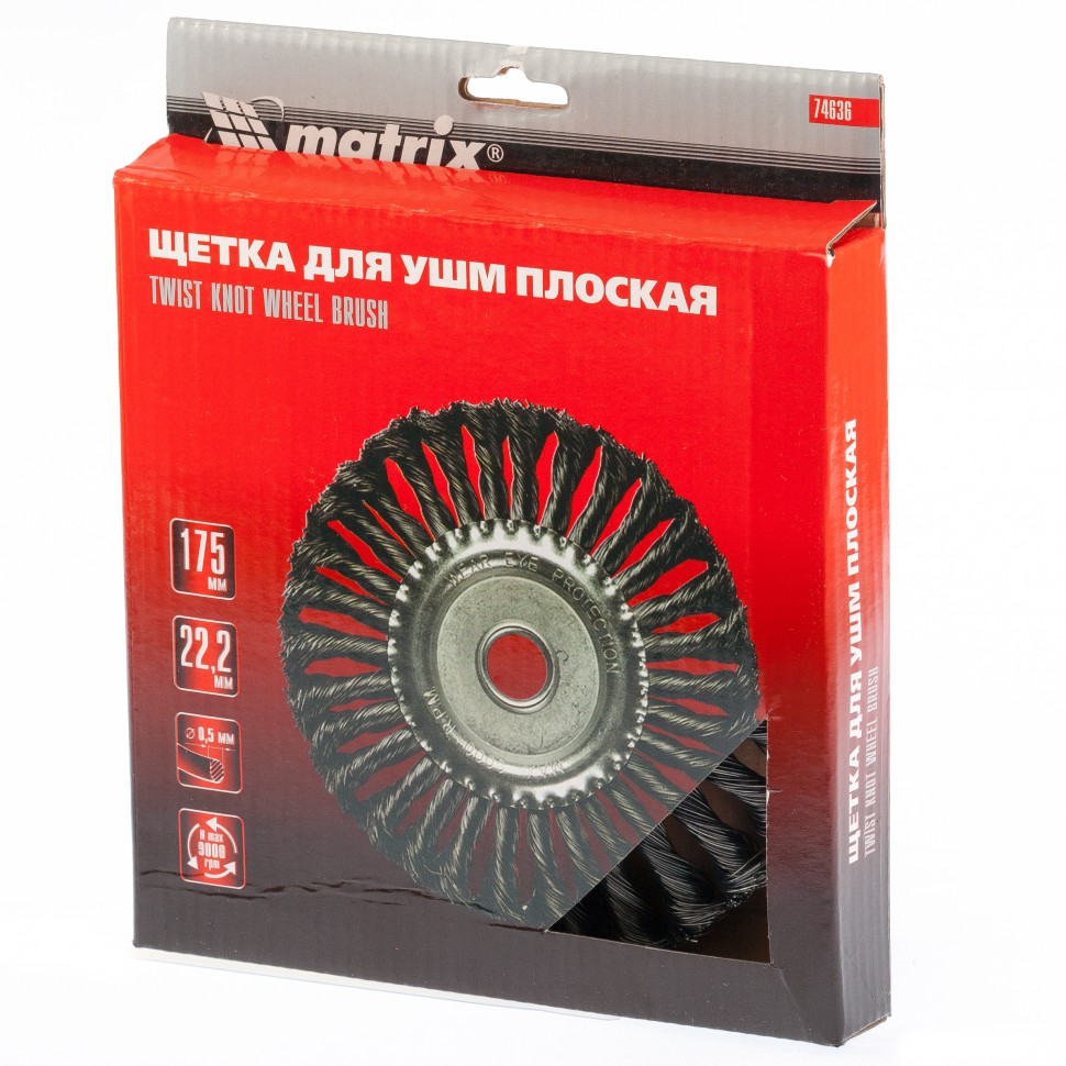 Плоская щетка Matrix 74636 диаметром 175 мм и посадкой 22,2 мм, с щетиной из крученой проволоки толщиной 0,5 мм, устанавливается на вал УШМ, поддерживающей скорость вращения не более 9000 об/мин. Эффективно удаляет загрязнения, толстый слой ржавчины и лакокрасочных материалов с поверхностей, поэтому используется для проведения грубой (черновой) обработки. Плоской щеткой удобно очищать труднодоступные места, в том числе углы и изгибы.ПреимуществаДолговечность — щетина из высококачественной стальной проволоки устойчива к износу.Универсальность — щетка подходит для обработки любых твердых поверхностей: из металла, древесины, цветных металлов, пластика и т. д.Стойкость к разрушению — корпус оцинкован, а щетина покрыта техническим маслом для защиты от коррозии.