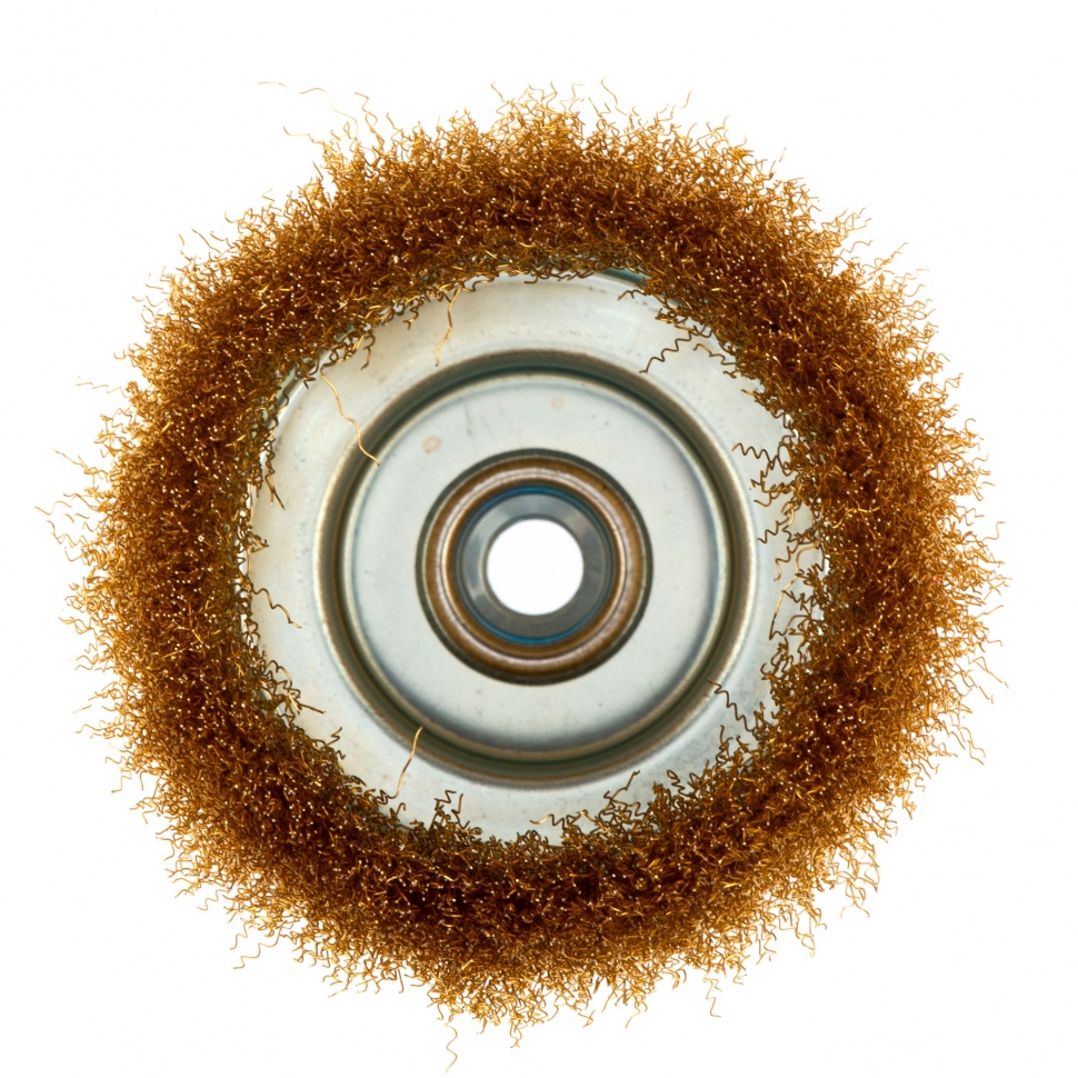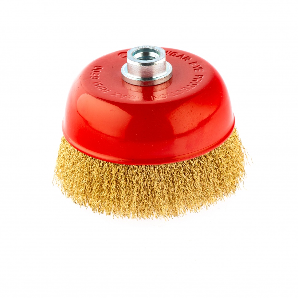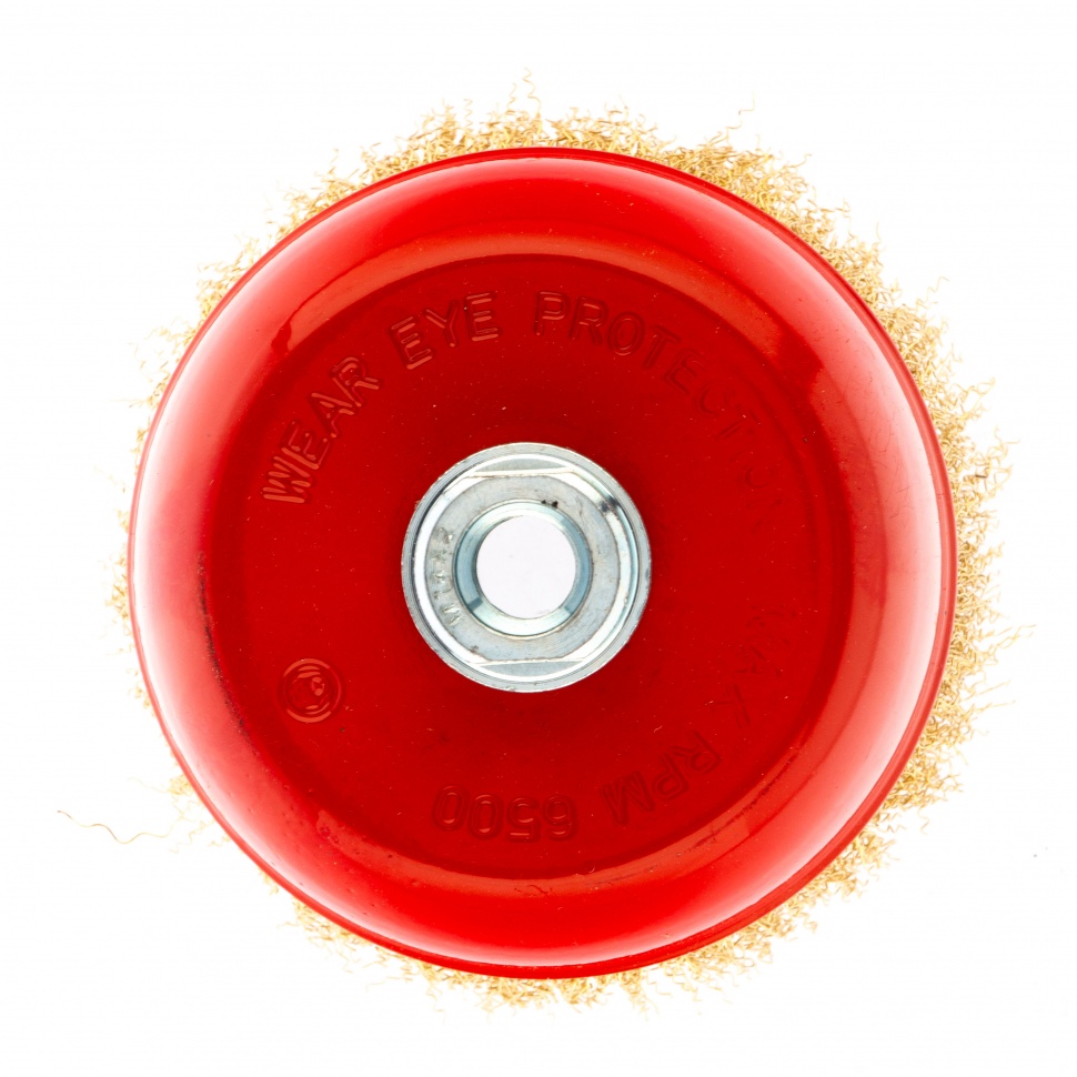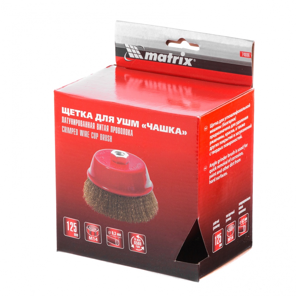 Щетка «чашка» Matrix 74606 диаметром 125 мм, с щетиной из латунированной витой проволоки, устанавливается на вал УШМ с помощью гайки М14. Предназначена для снятия тонкого слоя краски или лака, удаления ржавчины и загрязнений. При рекомендованной скорости вращения 6500 об/мин щеткой можно быстро обрабатывать участки большой площади.ПреимуществаВысокий ресурс — щетина выполнена из прочной стальной проволоки.Универсальность — щетка подходит для обработки древесины, металла, пластика и других твердых поверхностей.Аккуратная работа — витая щетина снимает тонкий слой материала.Коррозионная стойкость — корпус щетки покрыт защитной эмалью, щетина латунирована.