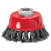 Щетка Matrix «Чашка» 74629 диаметром 150 мм, с присоединительной резьбой М14, с щетиной из крученой проволоки диаметром 0,5 мм, устанавливается на УШМ, поддерживающую работу со скоростью 4500 об/мин. Изделие предназначено для грубой (черновой) обработки поверхностей и подходит для удаления загрязнений, снятия толстого слоя ржавчины, ЛКМ, зачистки сварных швов.ПреимуществаПрочность и долговечность — щетина из крученой стальной проволоки выдерживает значительные нагрузки.Высокая производительность — насадка формы «чашка» оптимальна для зачистки больших поверхностей.Универсальность — щетка подходит для обработки любых твердых материалов: металла, древесины, цветных металлов, пластика и т. д.Устойчивость к разрушению — корпус покрыт эмалью, а щетина —техническим маслом.
