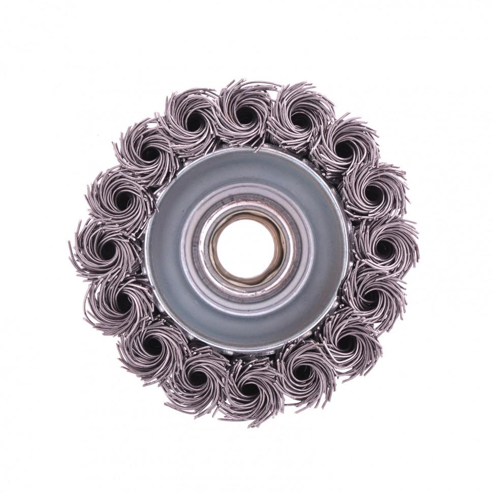 Щетка Matrix «Чашка» 74620 диаметром 65 мм, с присоединительной резьбой М14, с щетиной из крученой проволоки диаметром 0,5 мм, устанавливается на УШМ, поддерживающую работу со скоростью 12500 об/мин. Изделие предназначено для грубой (черновой) обработки поверхностей, подходит для удаления загрязнений, снятия толстого слоя ржавчины, ЛКМ, зачистки сварных швов.ПреимуществаПрочность и долговечность — щетина из крученой стальной проволоки выдерживает значительные нагрузки.Высокая производительность — насадка формы «чашка» оптимальна для зачистки больших поверхностей.Универсальность — щетка подходит для обработки любых твердых материалов: металла, древесины, цветных металлов, пластика и т. д.Устойчивость к разрушению — корпус покрыт эмалью, а щетина —техническим маслом.