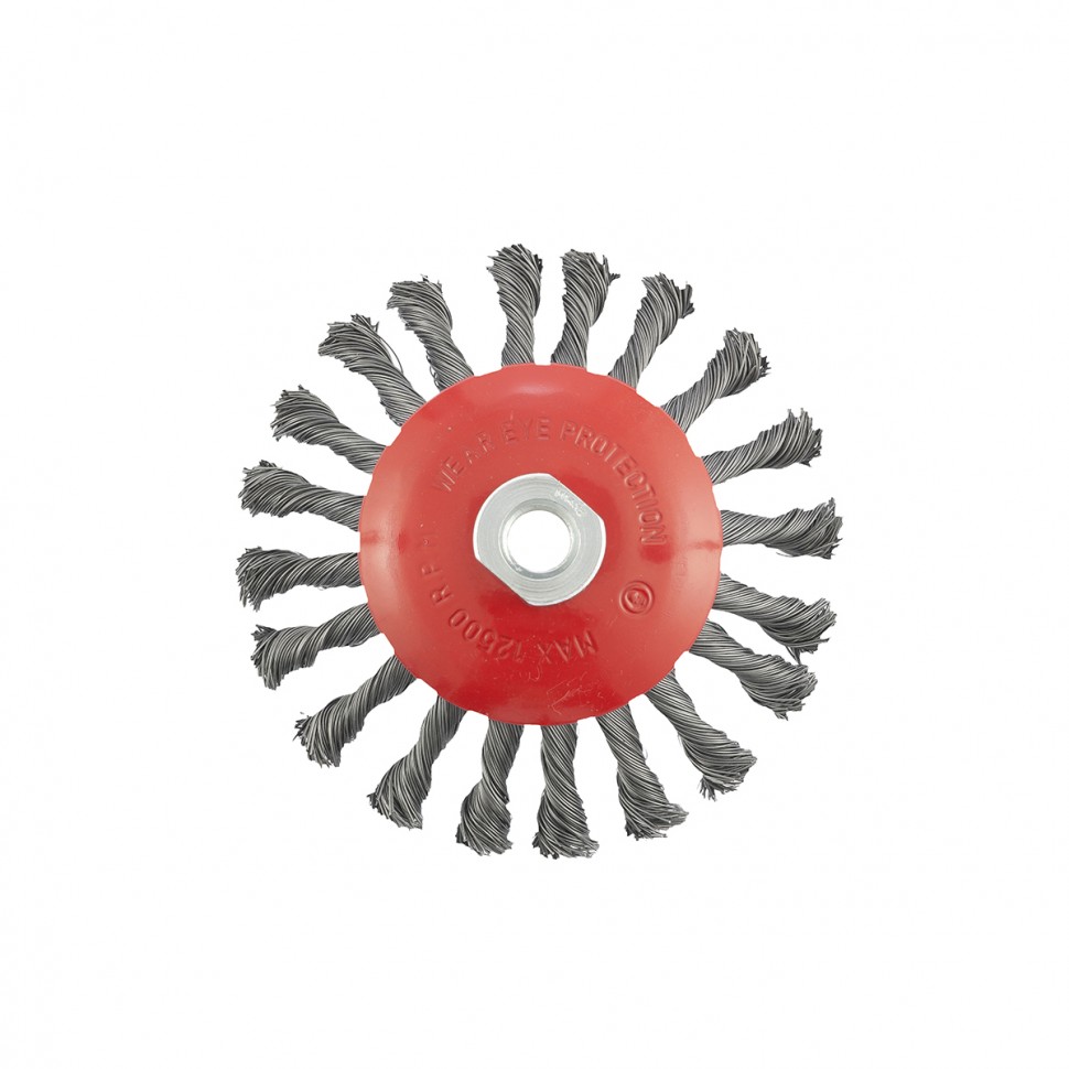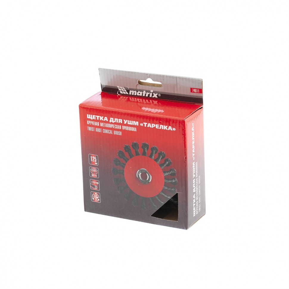 Щетка Matrix «тарелка» 74611 диаметром 125 мм, с щетиной из крученой проволоки толщиной 0,5 мм, устанавливается на УШМ при помощи гайки М14. Выполнена в форме тарелки, за счет чего подходит для грубой (черновой) обработки плоских и угловых поверхностей. Удаляет ржавчину, загрязнения, лакокрасочные покрытия, подходит для зачистки сварных швов. Использование на скорости до 12500 об/мин позволяет продлить срок службы насадки.ПреимуществаИзносостойкость — щетина изготовлена из высококачественной стальной проволоки.Универсальность — насадкой можно обрабатывать различные твердые материалы: металл, древесину, пластик, бетон.Антикоррозийная защита — на корпус нанесено эмалевое покрытие, щетина покрыта техническим маслом.