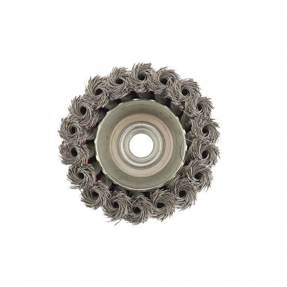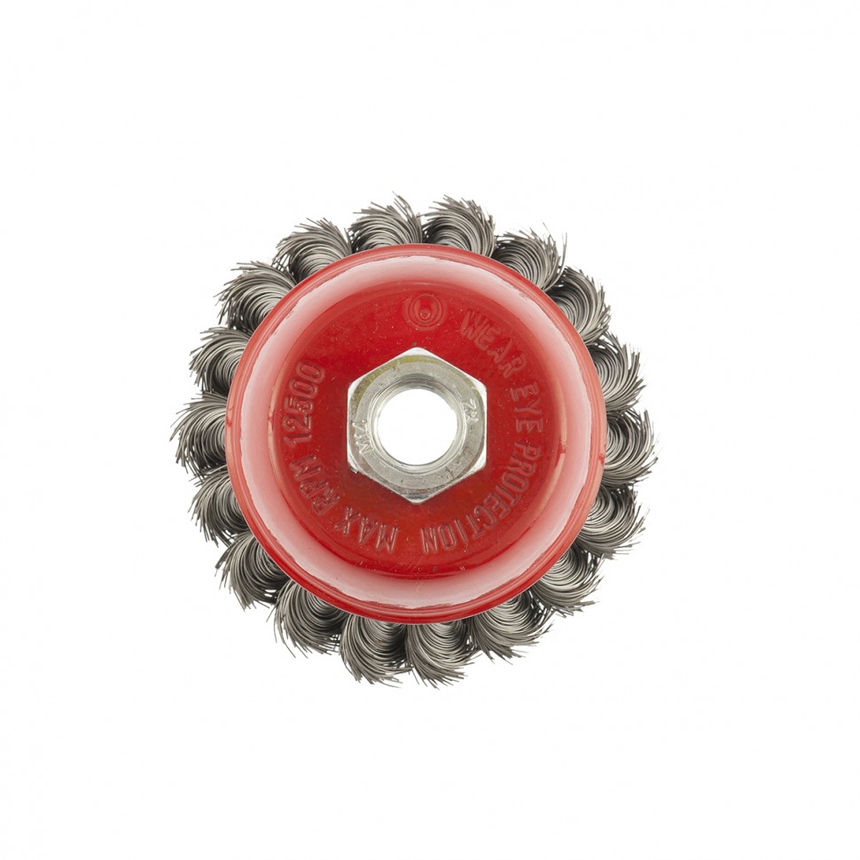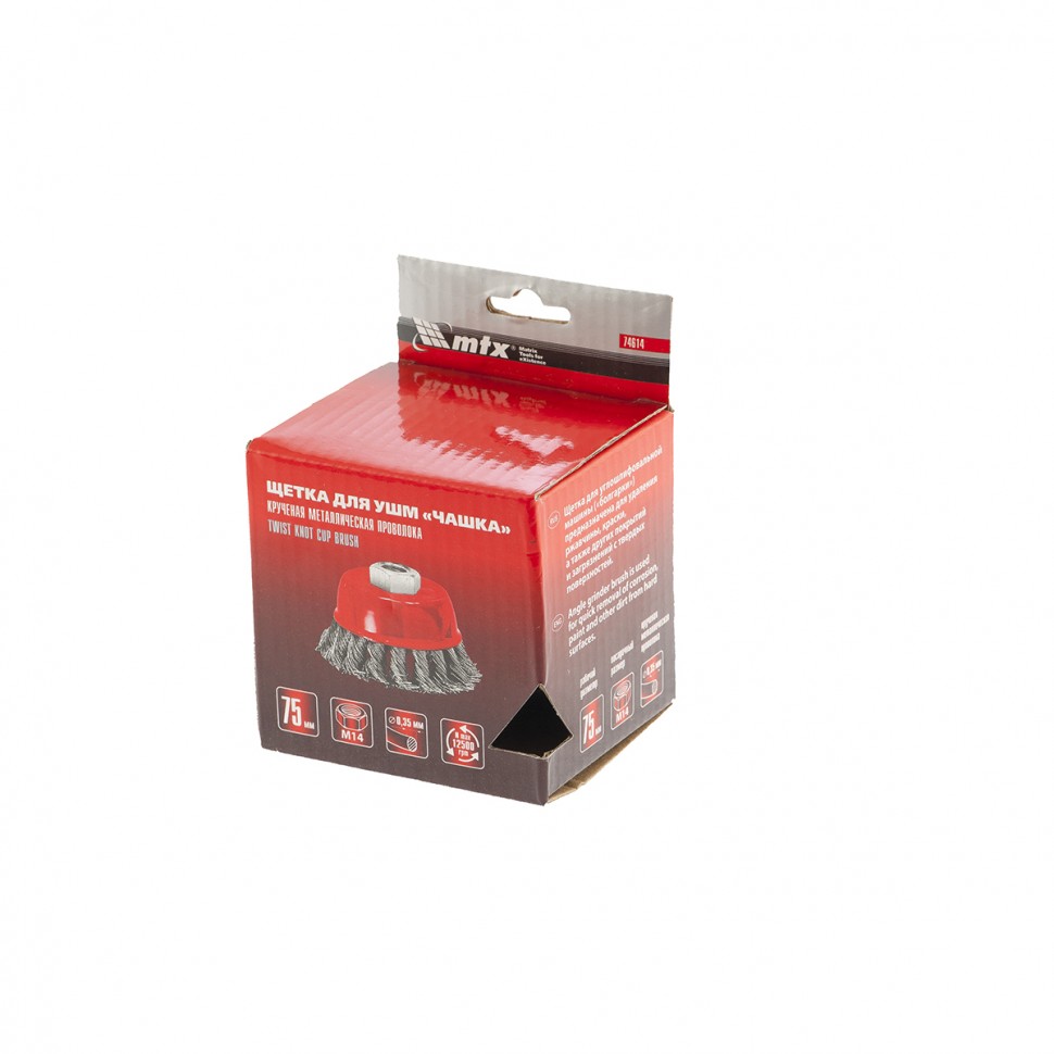 Щетка Matrix «Чашка» 74614 диаметром 75 мм, с присоединительной резьбой М14, с щетиной из крученой проволоки диаметром 0,35 мм, устанавливается на УШМ, поддерживающую работу со скоростью 12500 об/мин. Щетина предназначена для грубой (черновой) обработки поверхностей, менее агрессивной по сравнению с щетиной 0,5 мм. Изделие подходит для удаления загрязнений, снятия толстого слоя ржавчины, ЛКМ, зачистки сварных швов.ПреимуществаПрочность и долговечность — щетина из крученой стальной проволоки выдерживает значительные нагрузки.Высокая производительность — насадка формы «чашка» оптимальна для зачистки больших поверхностей.Универсальность — щетка подходит для обработки любых твердых материалов: металла, древесины, цветных металлов, пластика и т. д.Устойчивость к разрушению — корпус покрыт эмалью, а щетина —техническим маслом.
