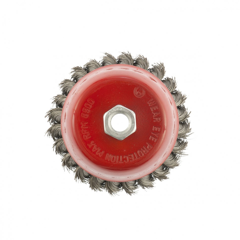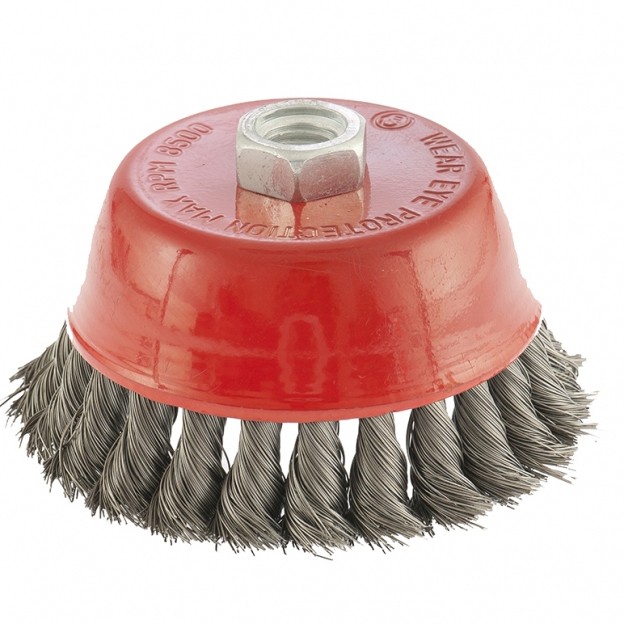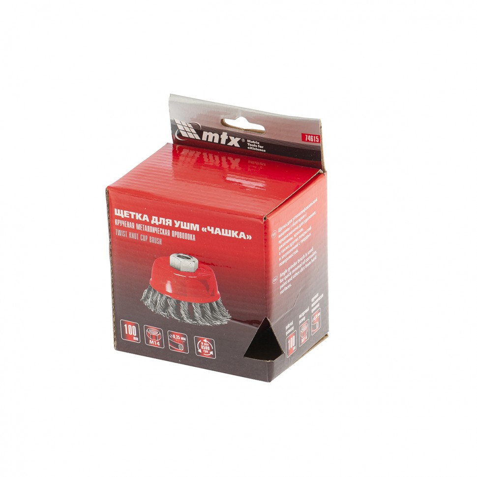 Щетка Matrix «Чашка» 74615 диаметром 100 мм, с присоединительной резьбой М14, с щетиной из крученой проволоки диаметром 0,35 мм, устанавливается на УШМ, поддерживающую работу со скоростью 8500 об/мин. Щетина предназначена для грубой (черновой) обработки поверхностей, менее агрессивной по сравнению с щетиной 0,5 мм. Изделие подходит для удаления загрязнений, снятия толстого слоя ржавчины, ЛКМ, зачистки сварных швов.ПреимуществаПрочность и долговечность — щетина из крученой стальной проволоки выдерживает значительные нагрузки.Высокая производительность — насадка формы «чашка» оптимальна для зачистки больших поверхностей.Универсальность — щетка подходит для обработки любых твердых материалов: металла, древесины, цветных металлов, пластика и т. д.Устойчивость к разрушению — корпус покрыт эмалью, а щетина —техническим маслом.